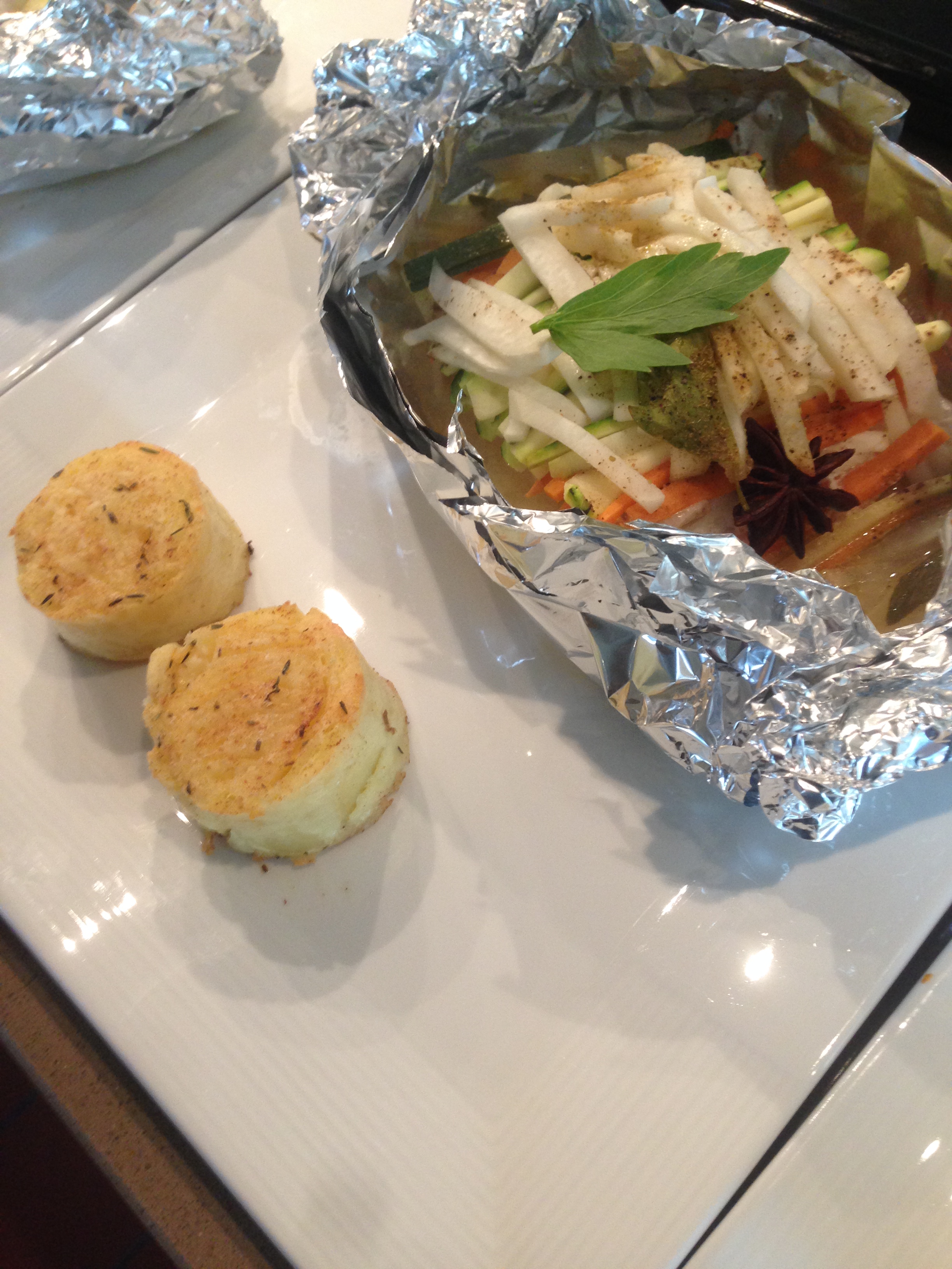 Kabeljauw loins, papillot, komijn, steranijs, meiraapjes