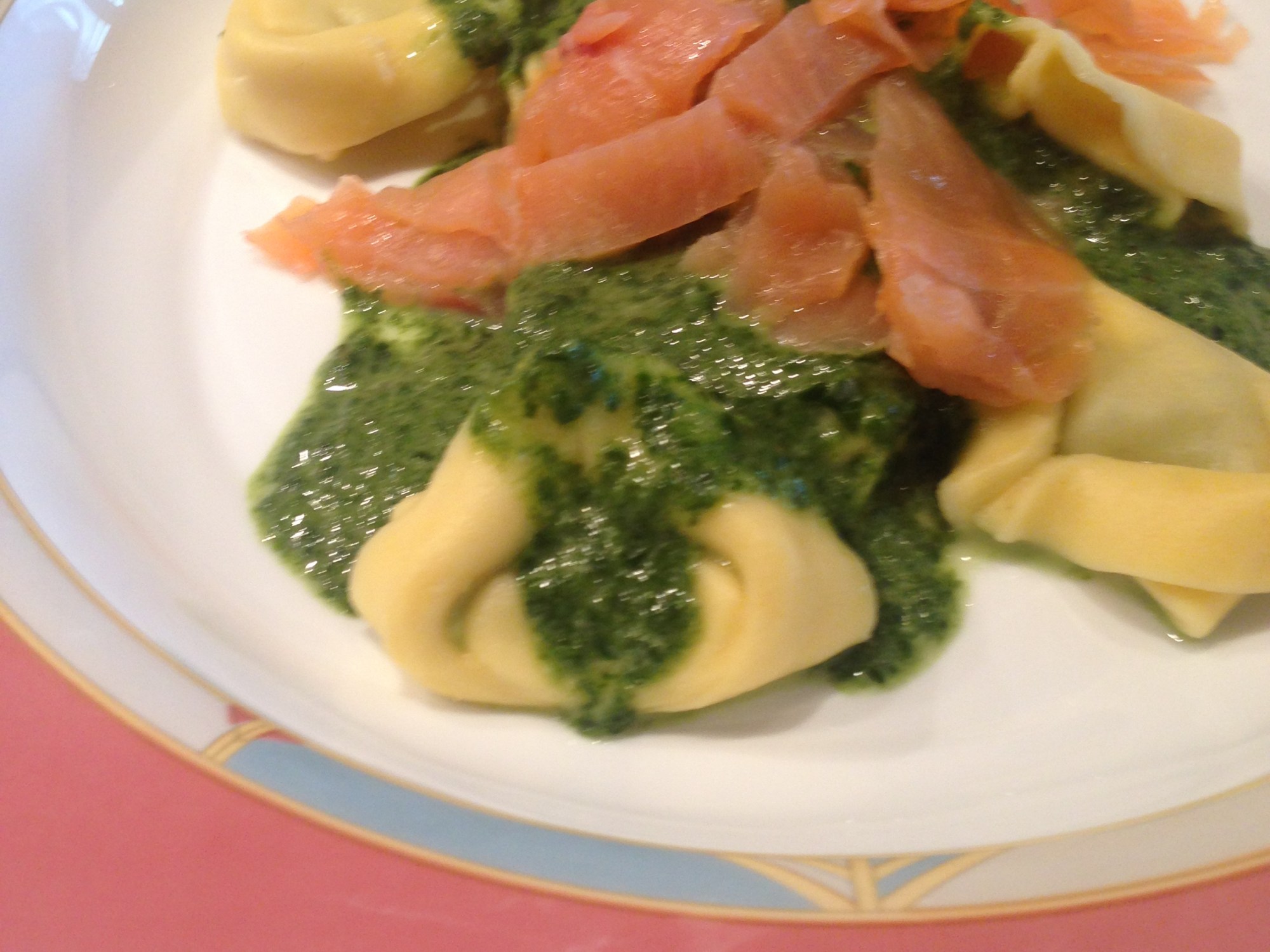 26 februari 2017: tortellini met spinaziesausje met gerookte zalm.