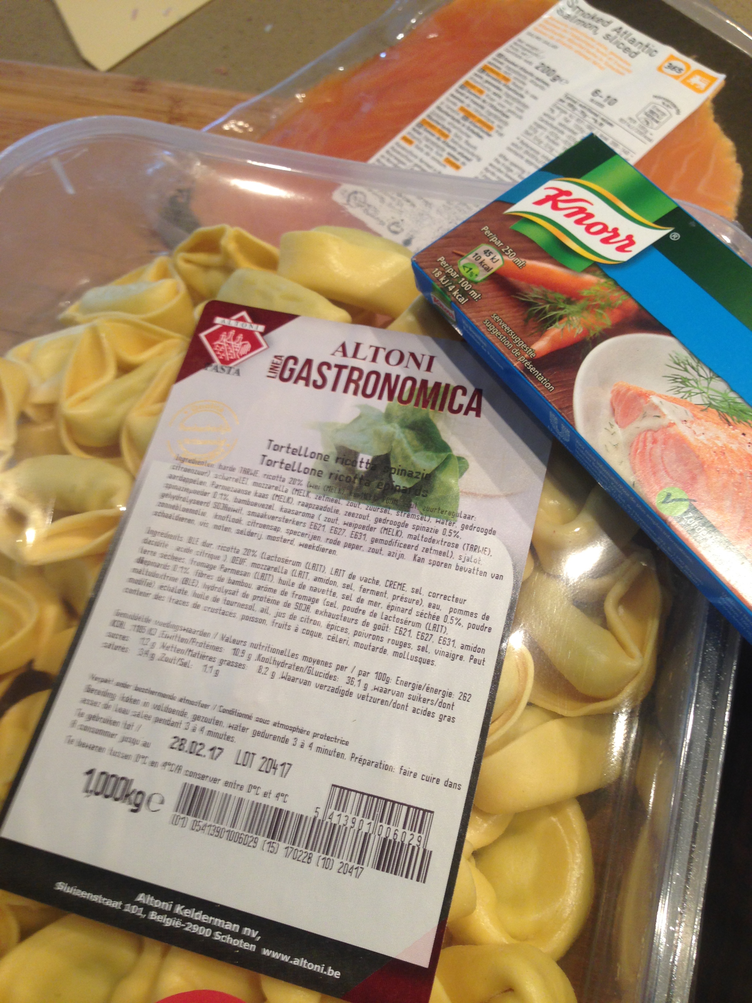 tortellini, spinazie, zalm