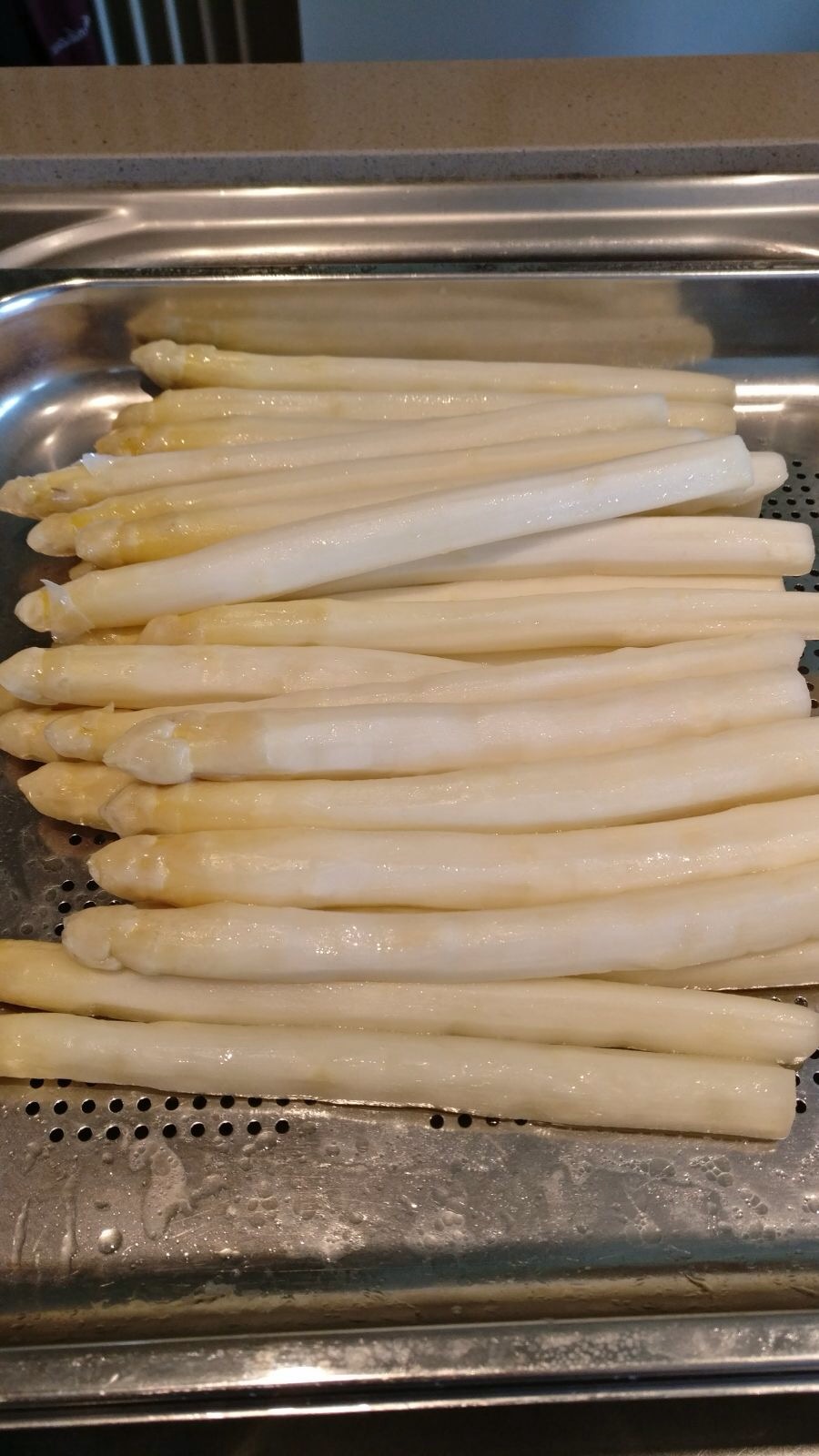Asperges, gerookte Heilbot, krielaardappeltjes