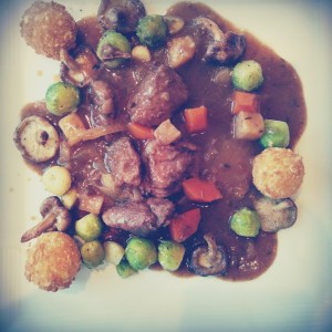 Hert, spuitjes, pommes Amande