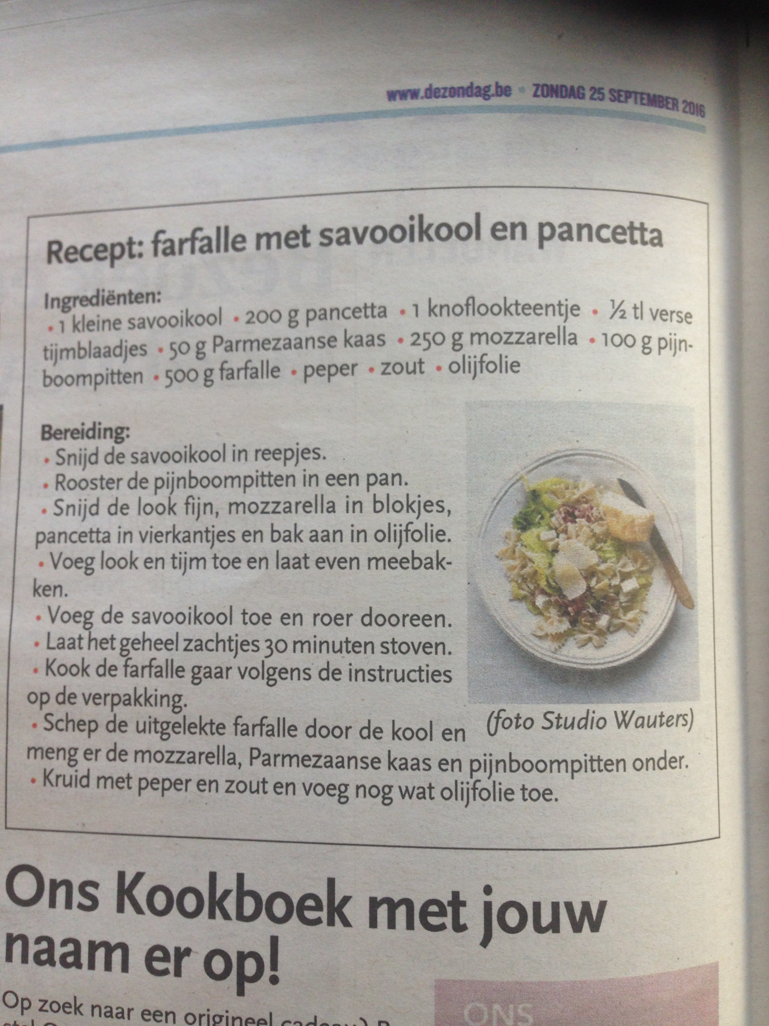 Farfalle, savooikool, pancetta
