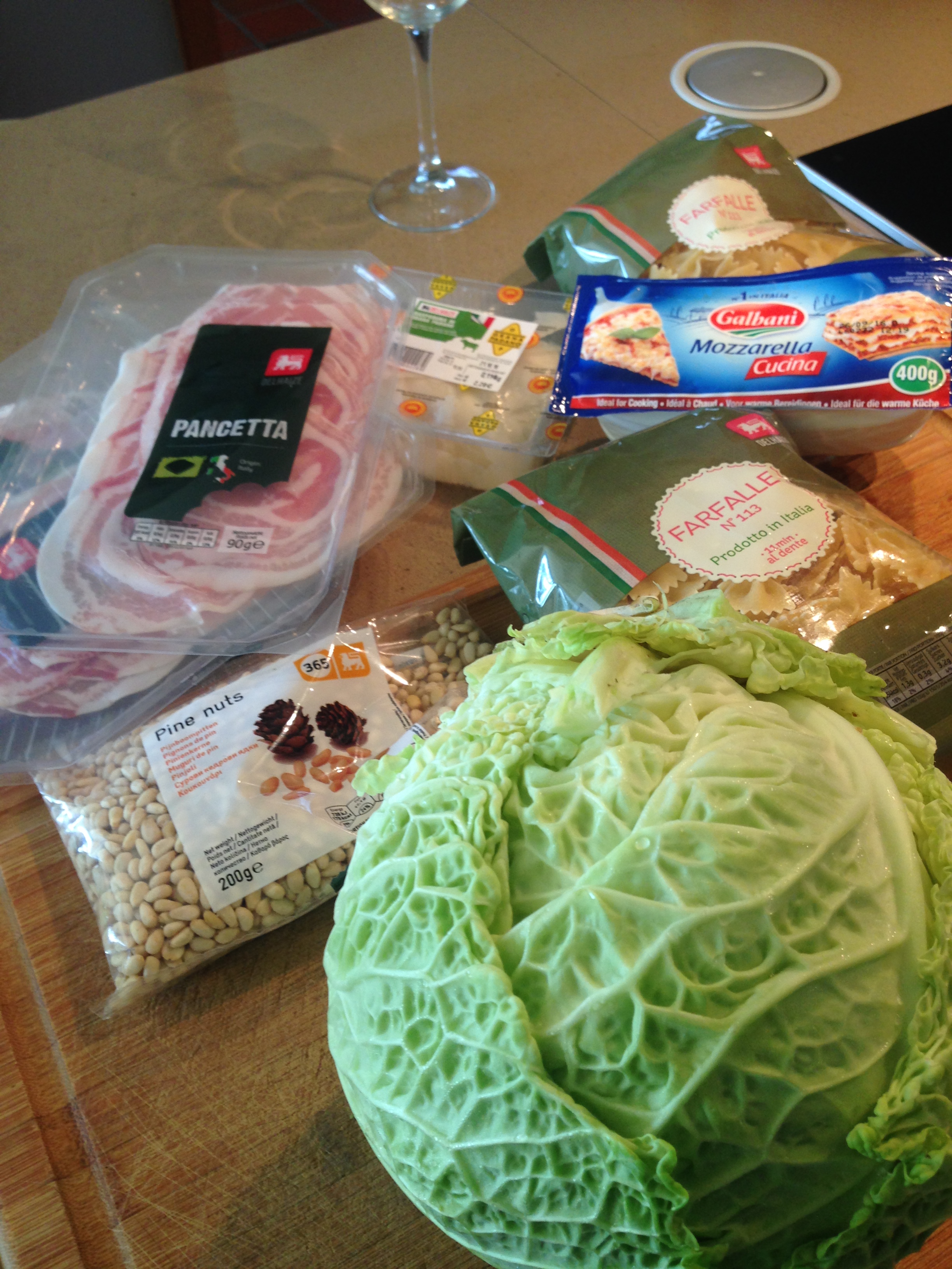 Farfalle, savooikool, pancetta