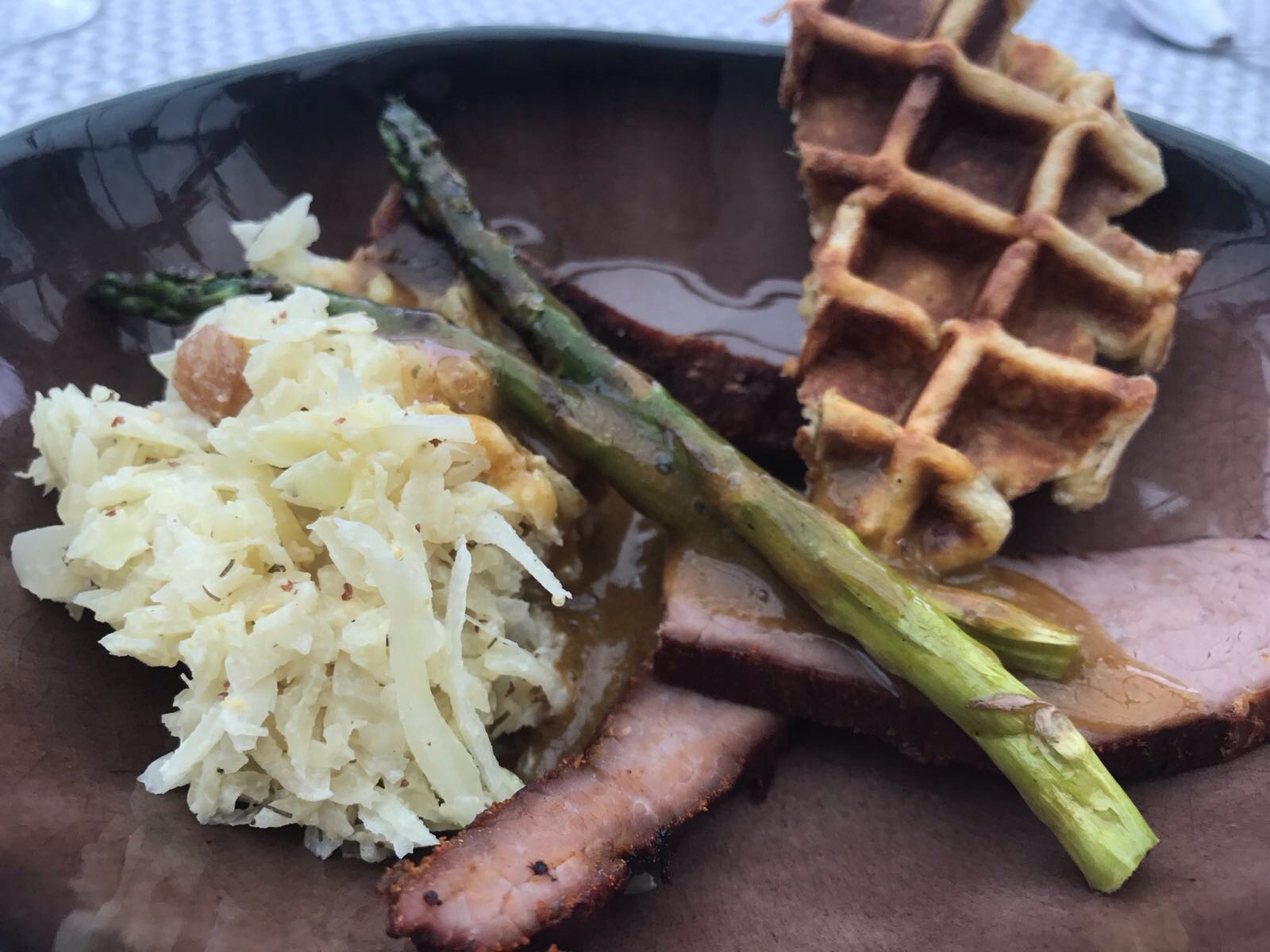 Brisket, maiswafels, coleslaw