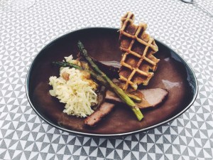 Brisket, maiswafels, coleslaw