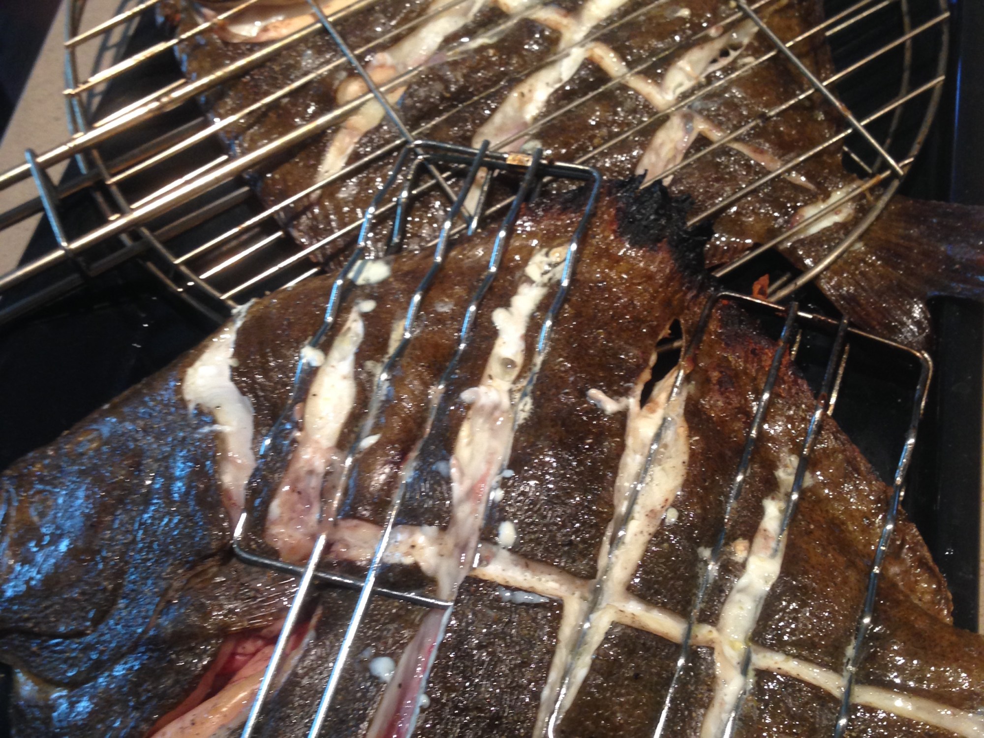 Ik had gelukkig nog wat grote klemmen liggen om de vis te draaien op de BBQ. Is zeker noodzakelijk. Gemakkelijk was dit niet. Controleer goed de gaarheid. 15 minuten zal te kort zijn!