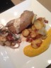 Wilde eend, pompoen, gebakken aardappelen