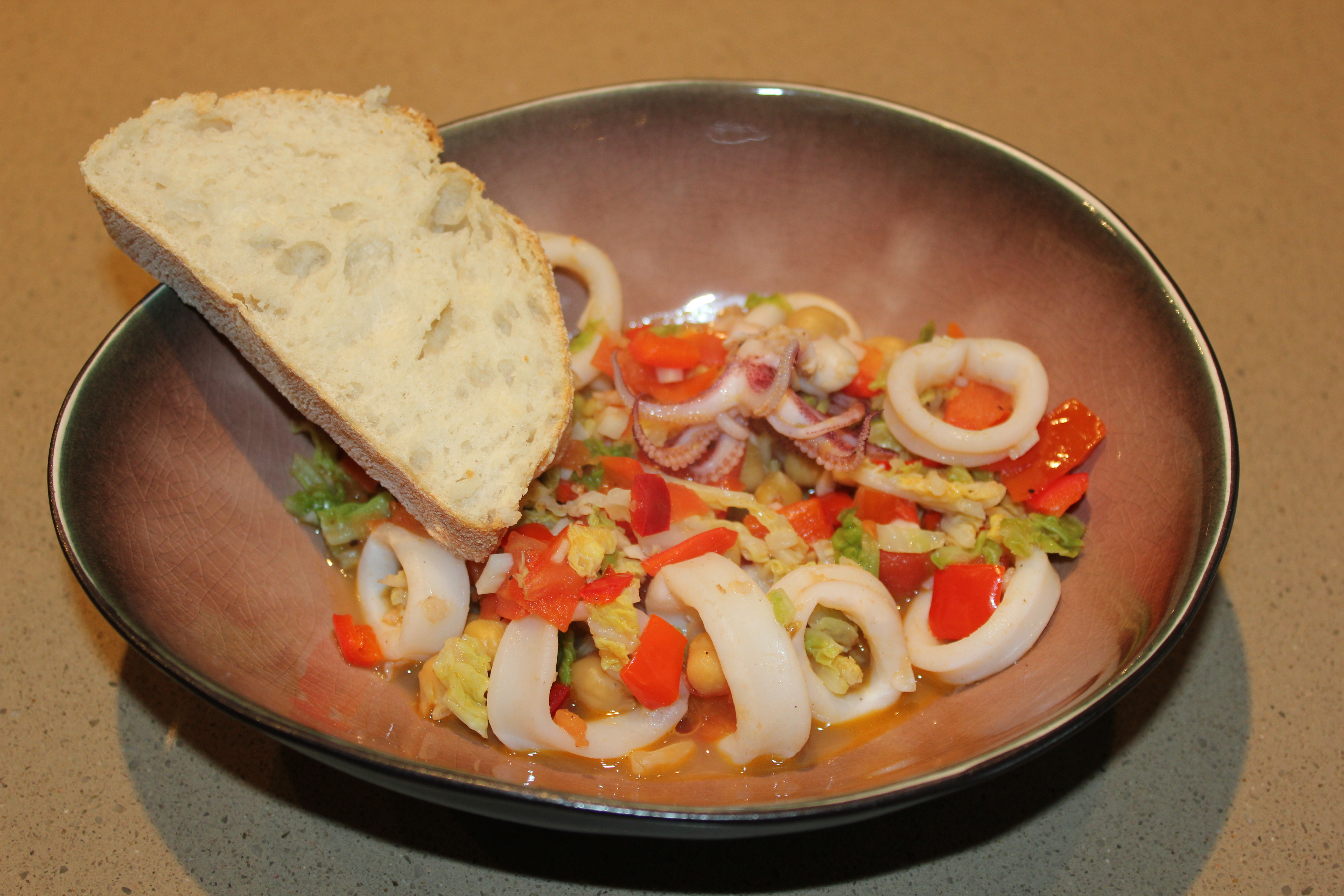 inktvis, groene kool, kikkererwten