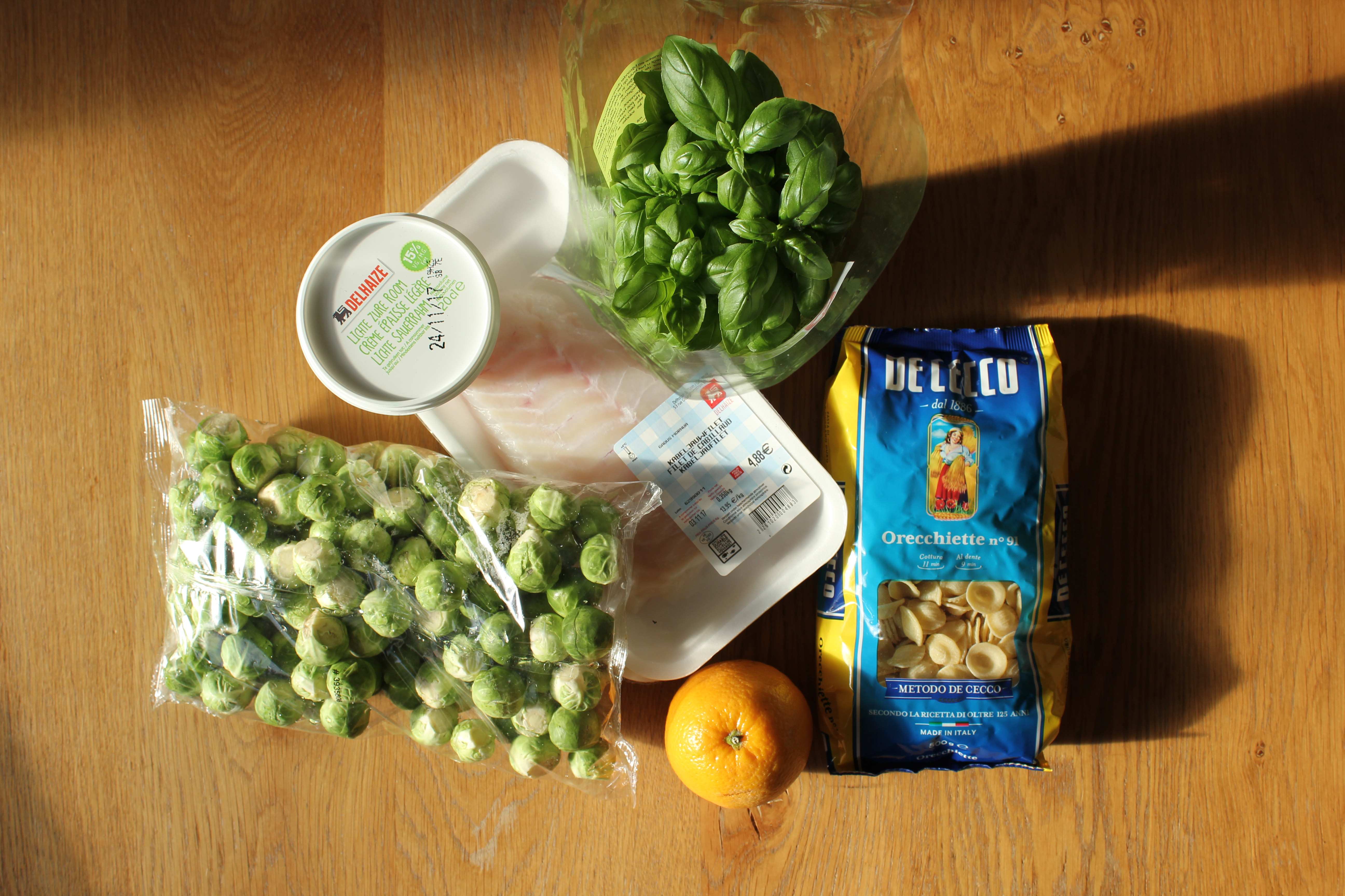 Kabeljauw, orecchiette, spruitjes