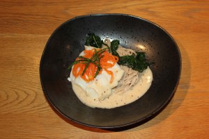 Skrei, noedels, spinazie
