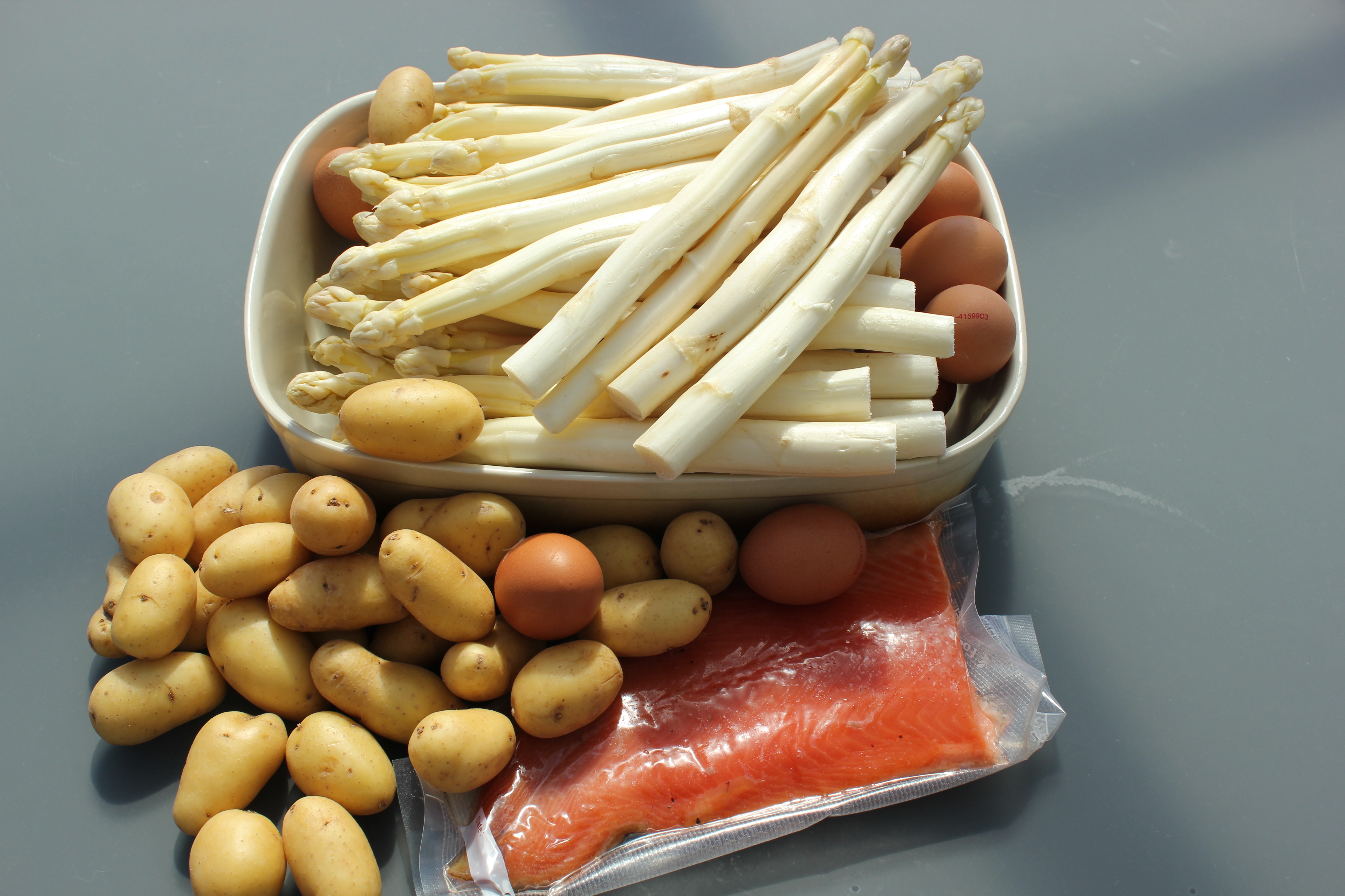 Asperges, zalm, gepocheerd ei