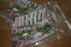 Varkenskroon, groentespies, knoflook-peterselie mayonaise