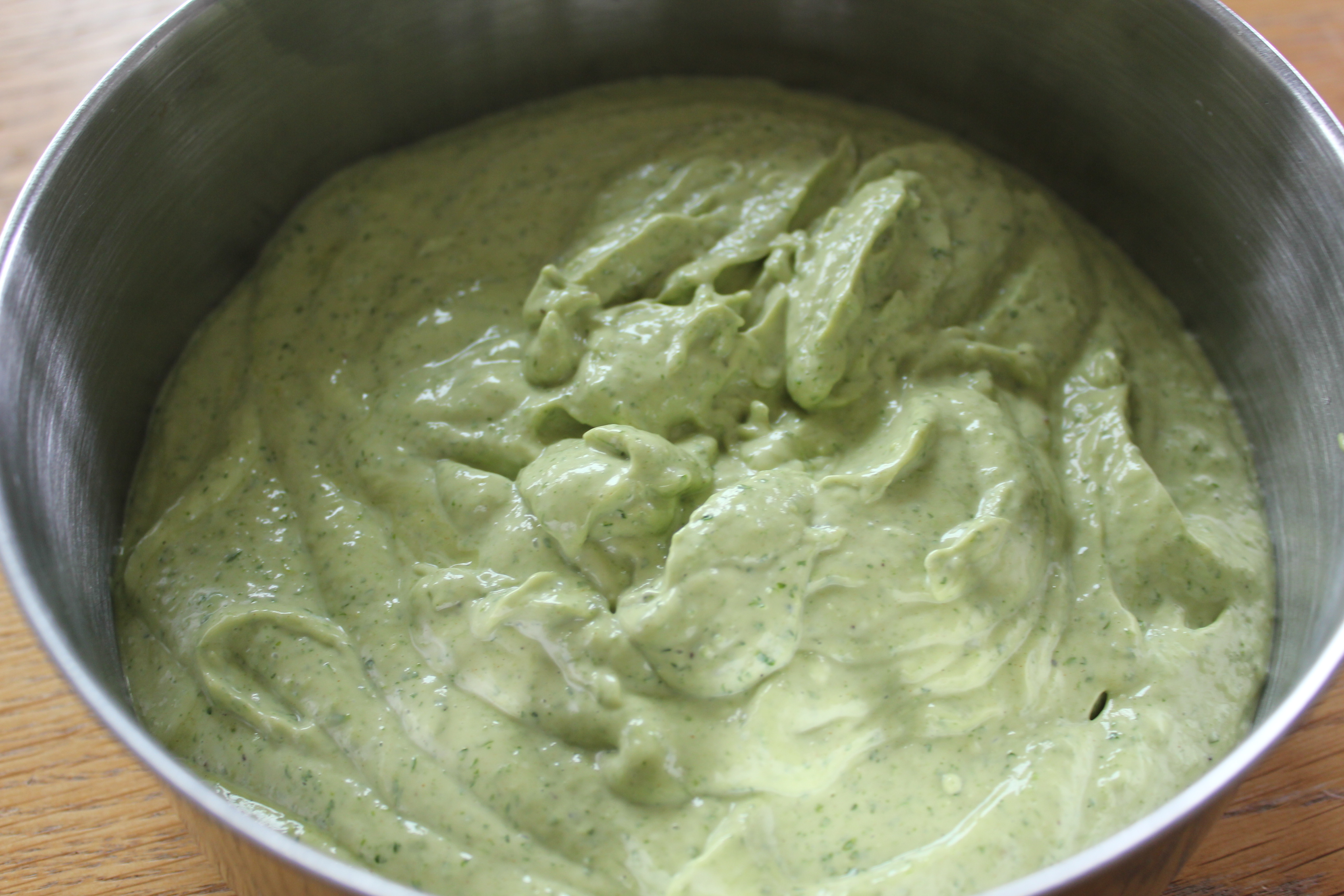 Varkenskroon, groentespies, knoflook-peterselie mayonaise