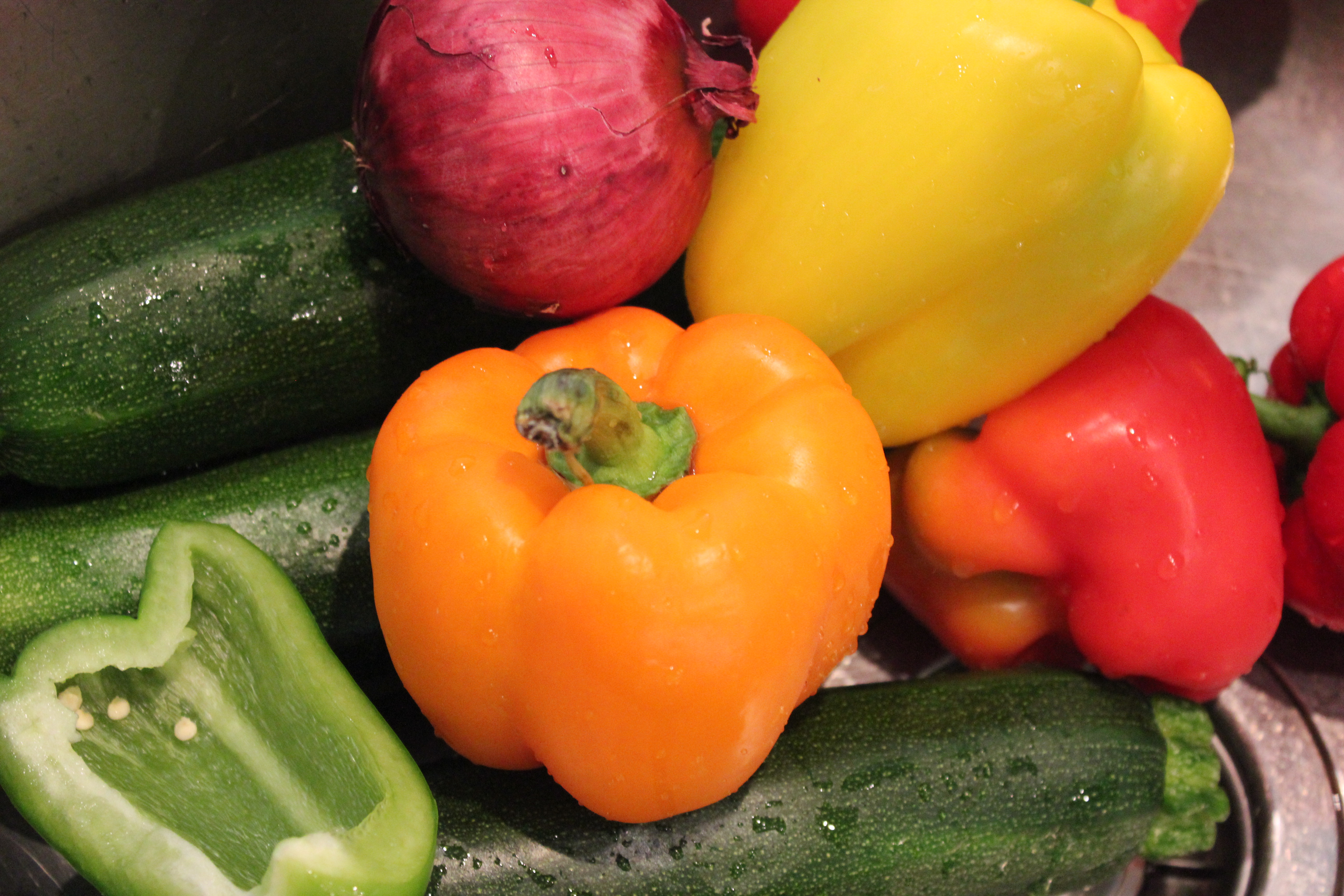 Varkenskroon, groentespies, knoflook-peterselie mayonaise