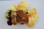 Parelhoen, puree, courgette