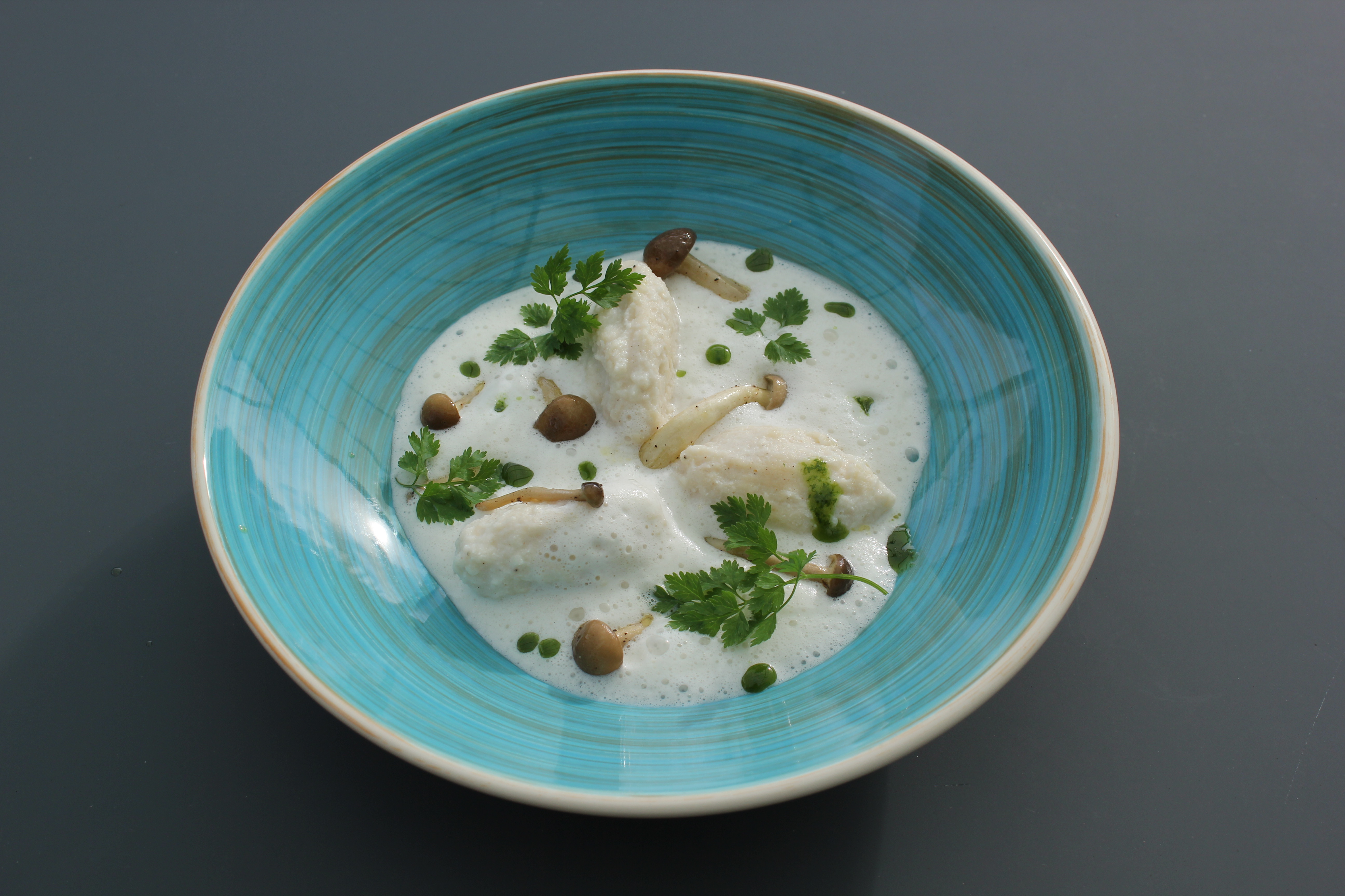Gnocchi, ricotta, carbonara van amandel