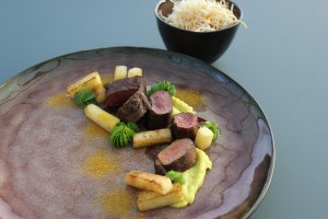 Hazenrugfilet, appeltjes, jeneverbessensaus, kadayif