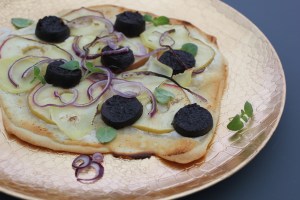 Tarte Flambée, bloedworst, appel