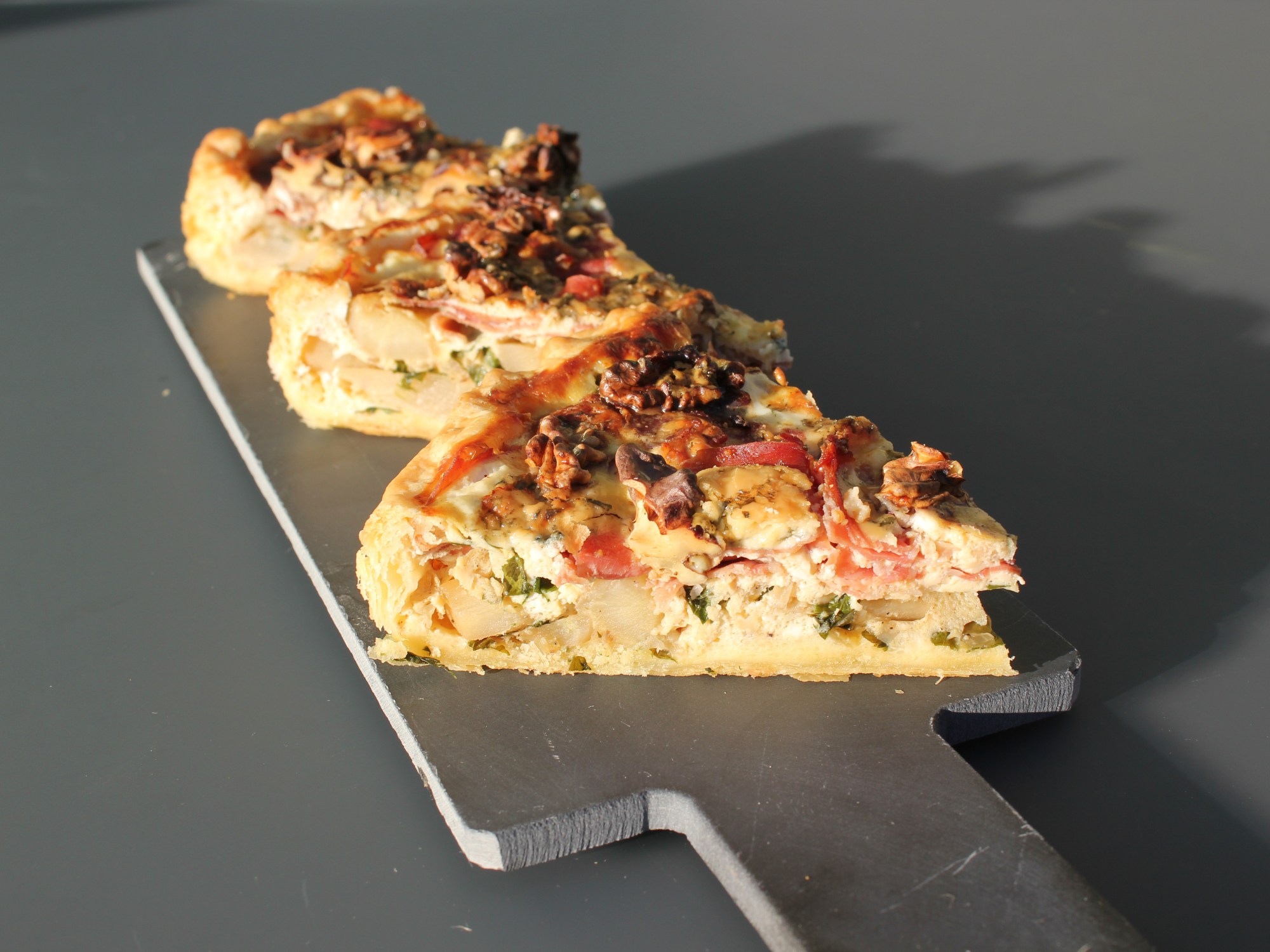 Quiche van verse schorseneren, prosciutto-ham en okkernoten