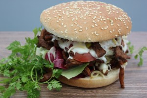 Kebab, kalfsgebraad, Atjar, Courgette