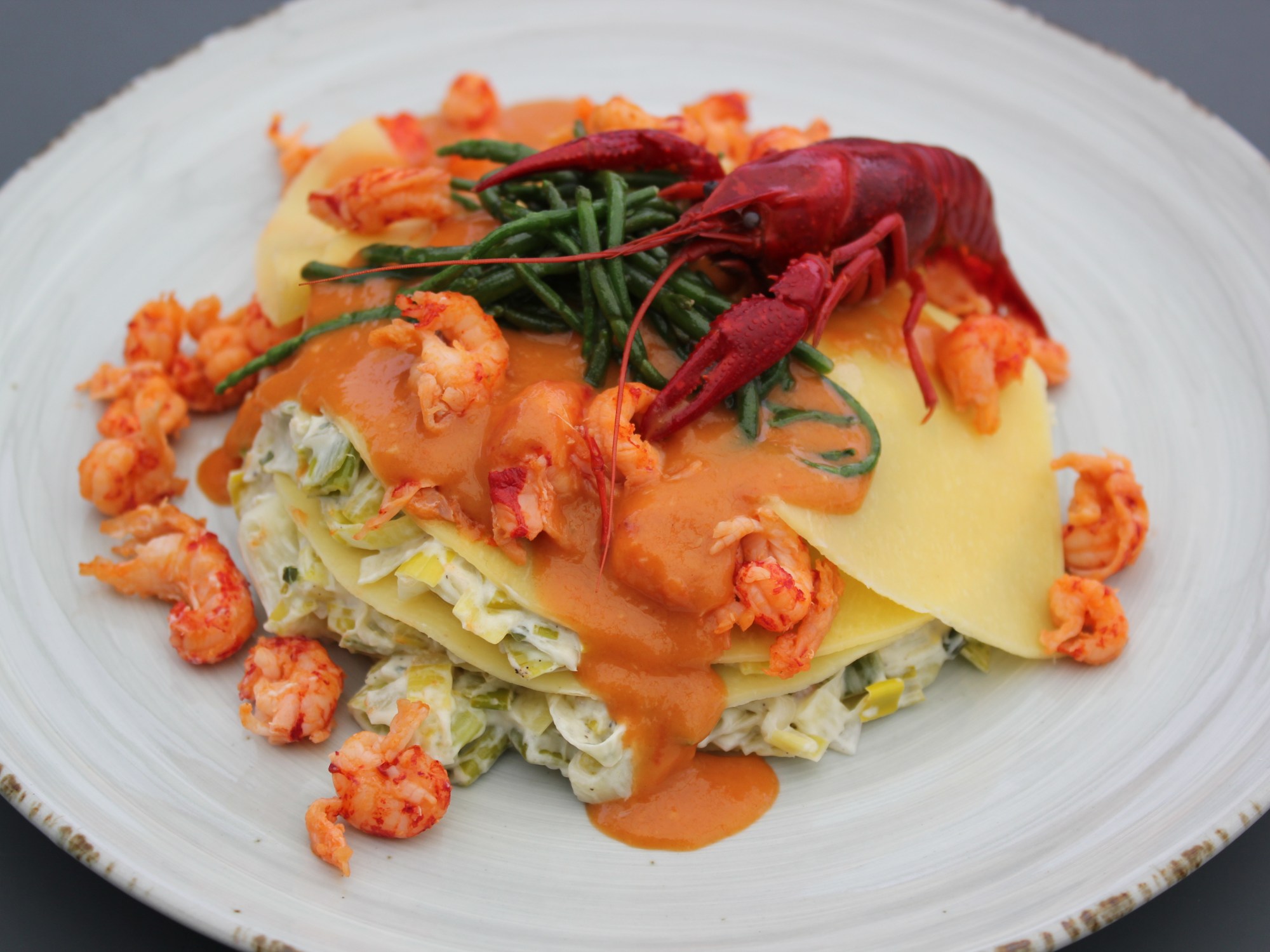 Open lasagne | rivierkreeftjes | porei | mascarpone | kreeftensaus | dragon | zeekraal