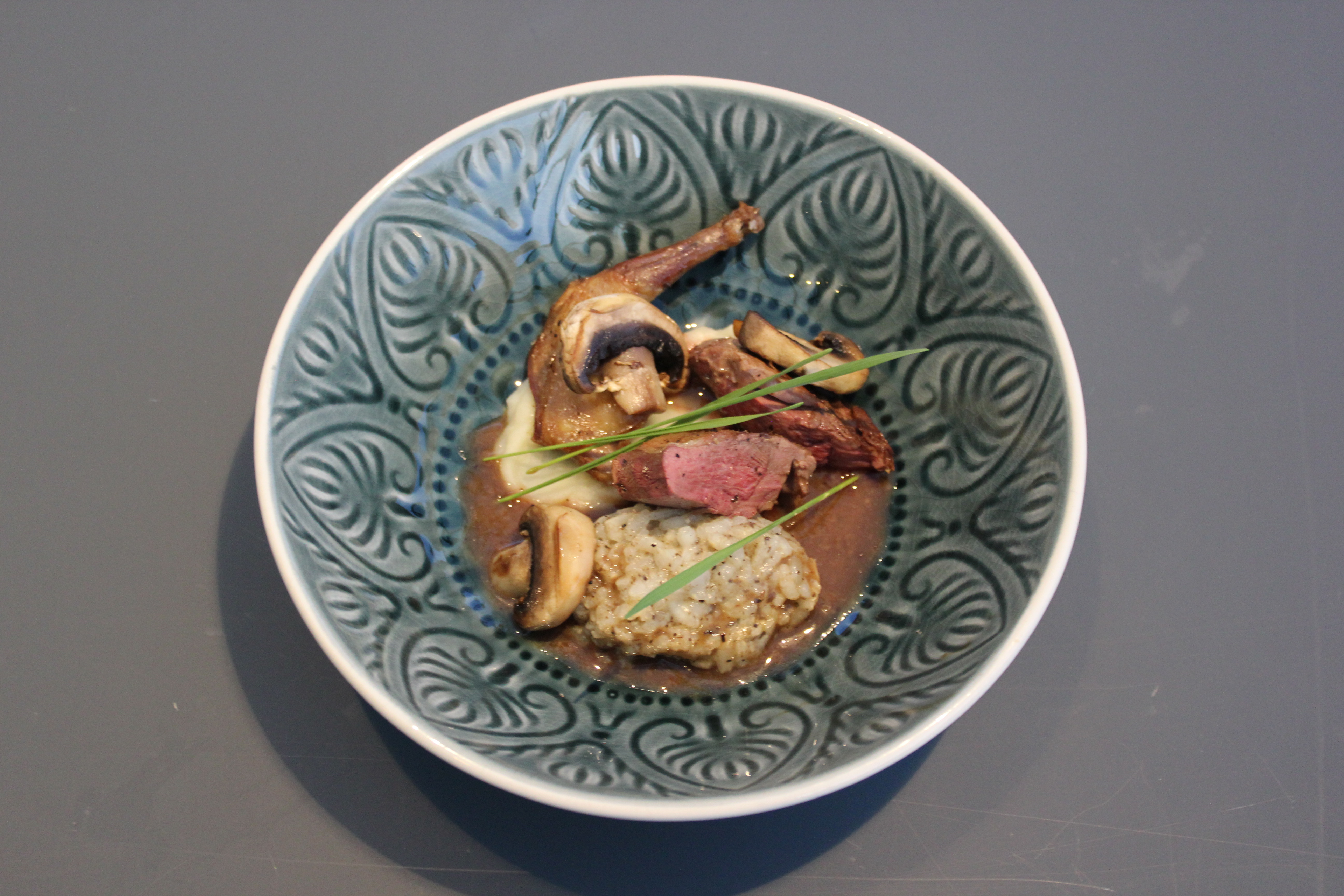 Duif, peterseliewortel, risotto
