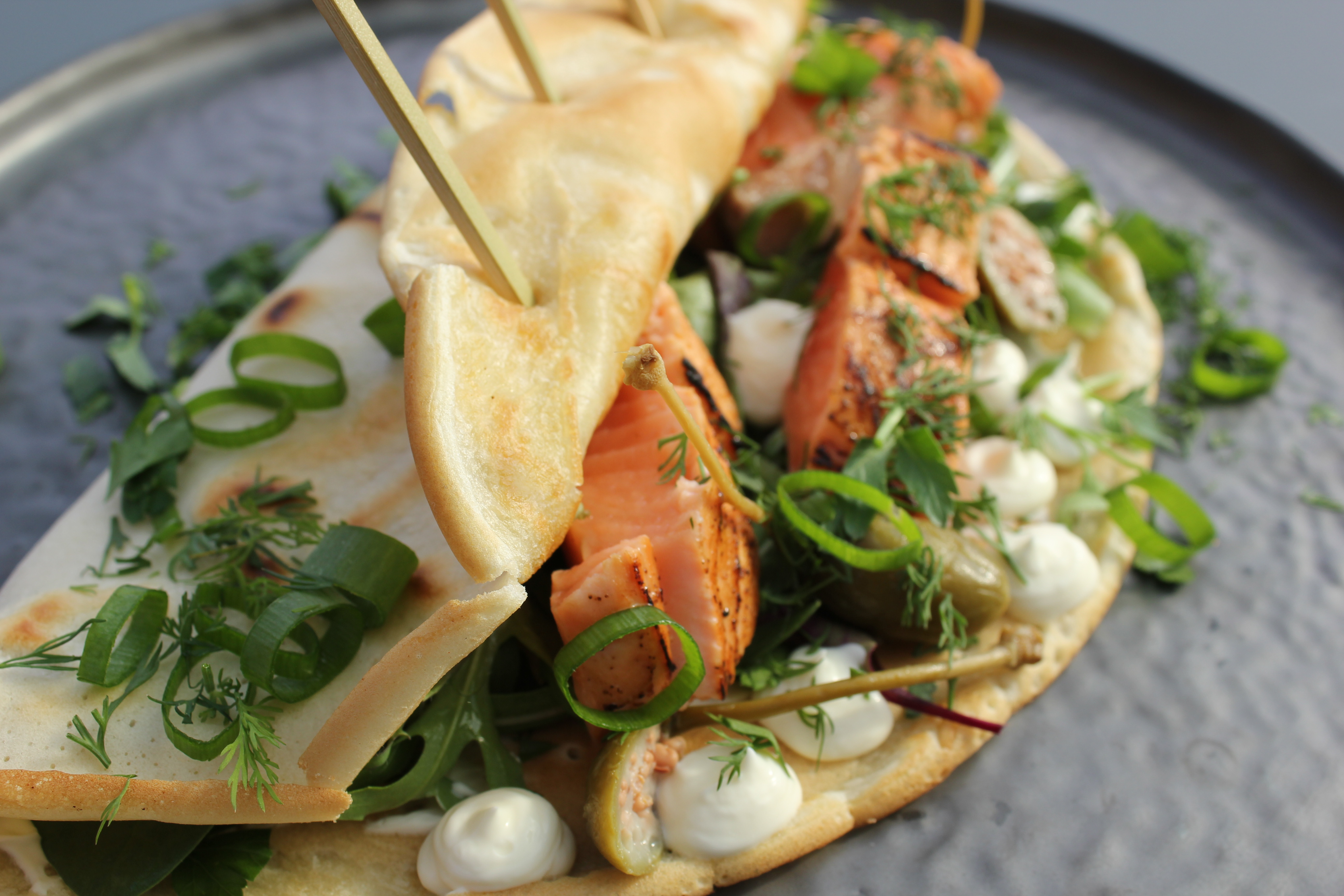 Tapioca pannenkoekjes, zalm, kruiden