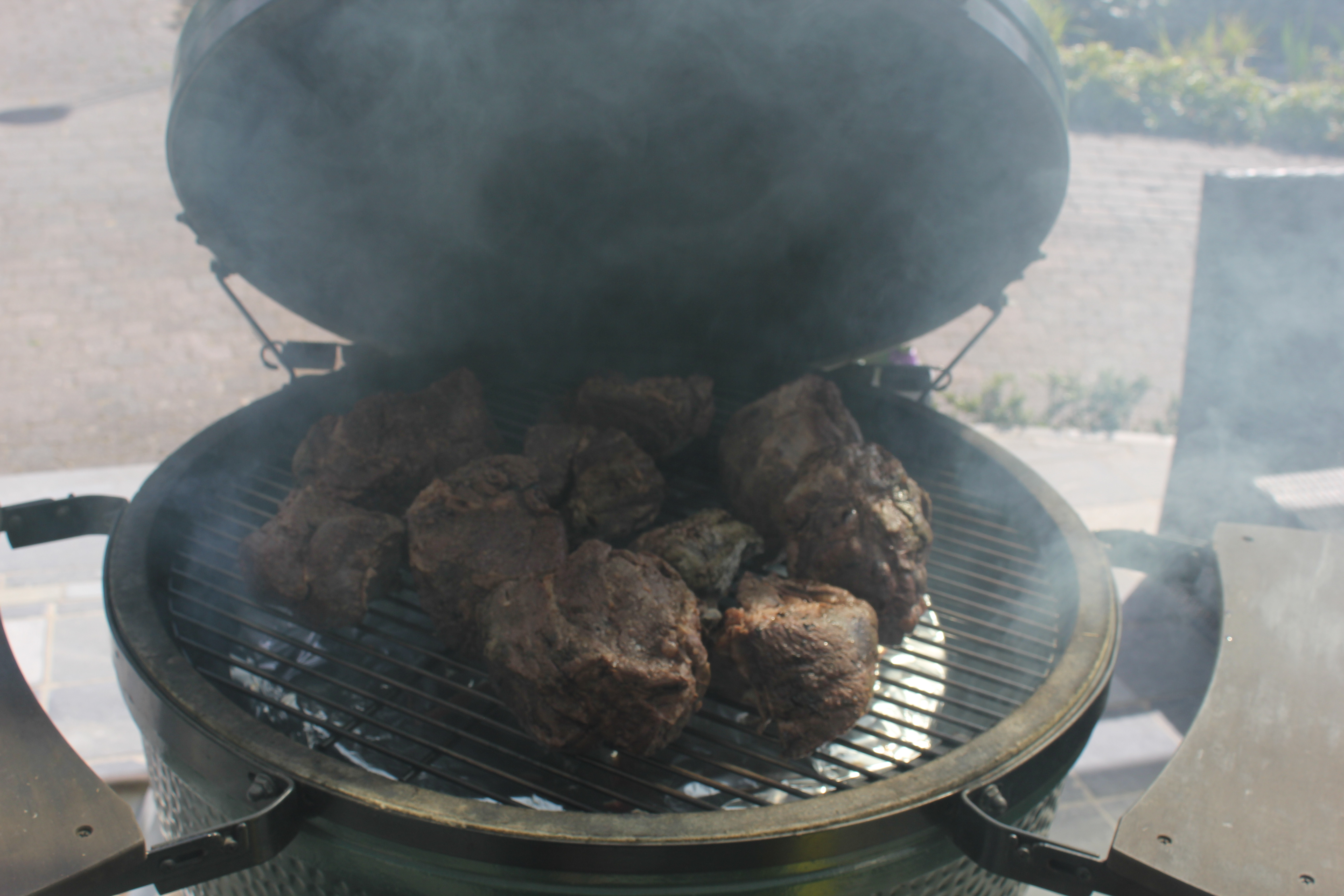 Pulled beef, aubergine, sojabonen, biet, tomaat