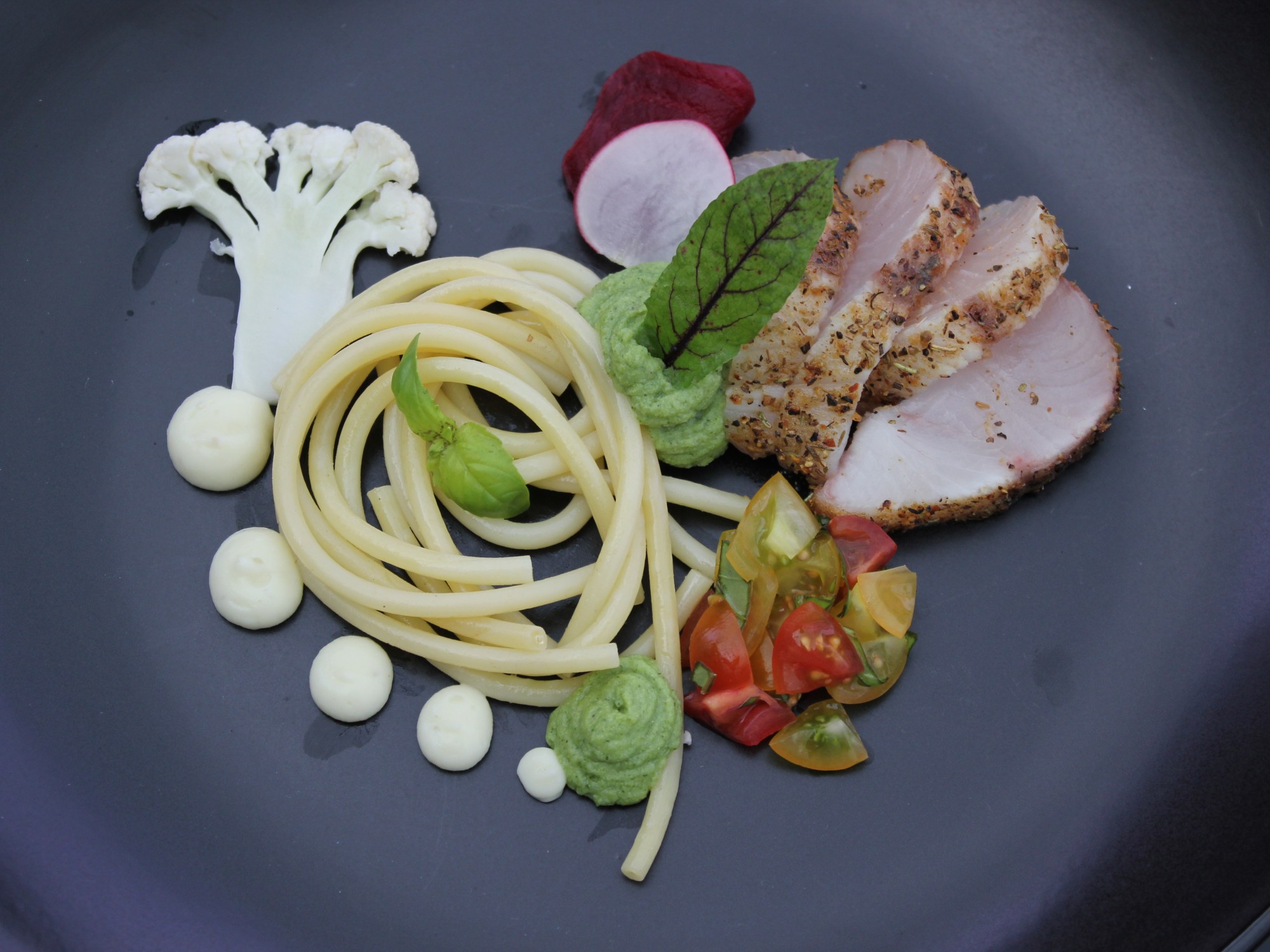 Yellowtail Kingfish uit Zeeland | bloemkool | broccoli | tomatenmix | radijs | rode biet | bucatini n°15