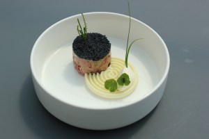 Rundstartaar, asperge-aardappelmousse