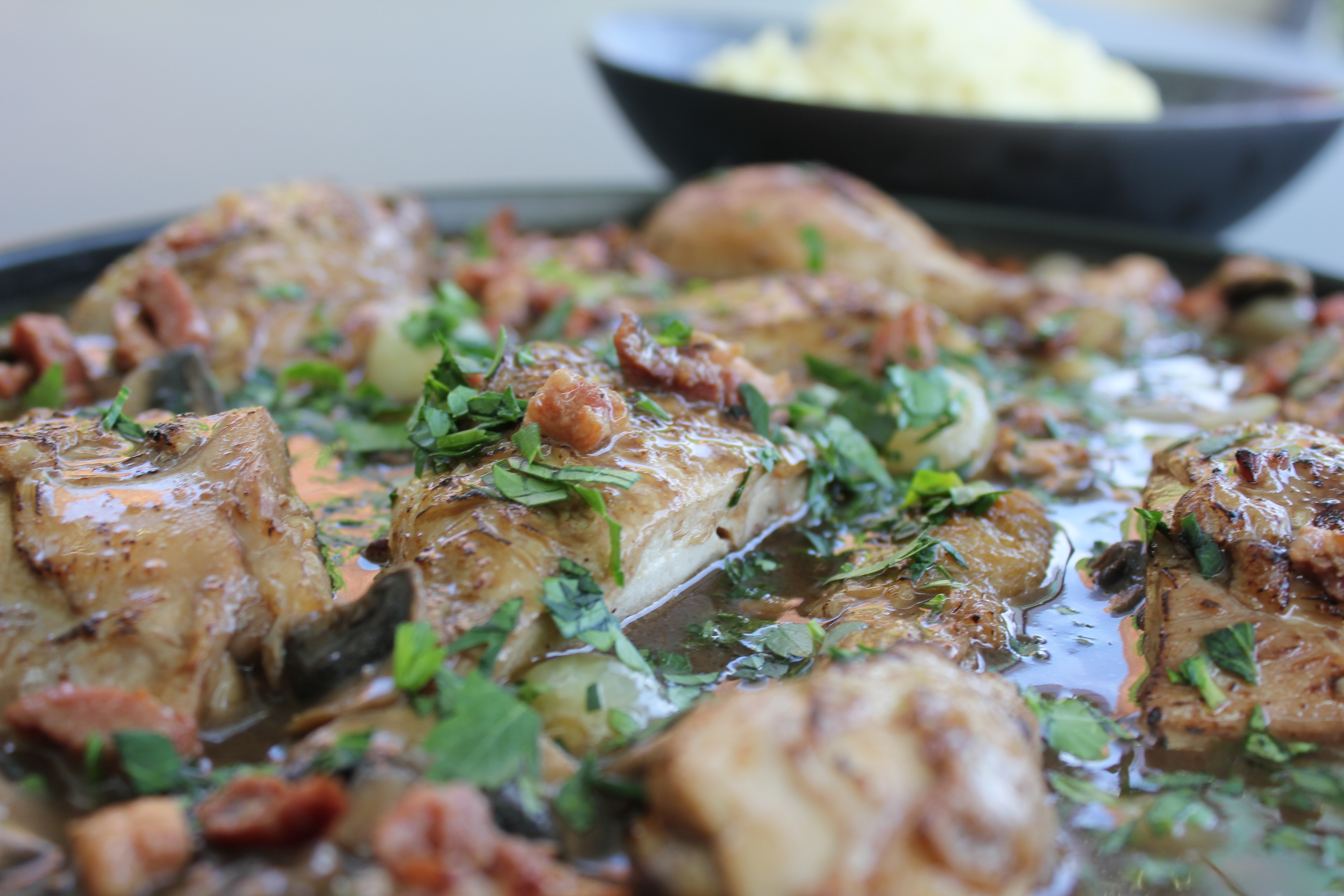 Coq au vin, rode wijn-portsaus
