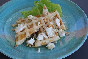 wafel, geitenkaas, honing