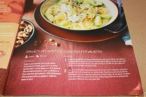 Spaghetti, spruitjes, gorgonzola, okkernoten