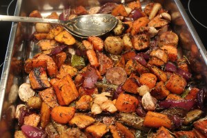 Beer Can Chicken, geroosterde groentjes