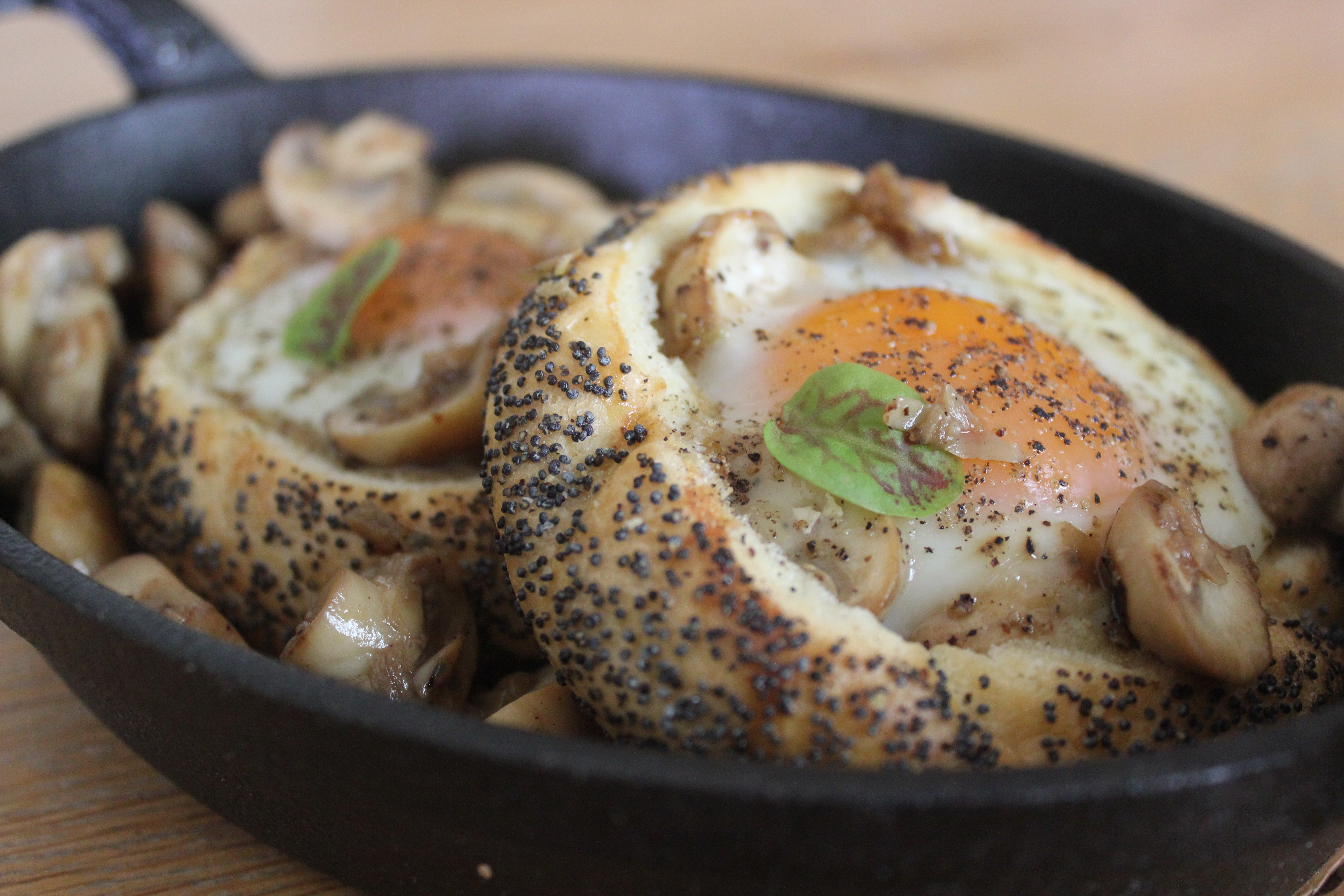 Broodjes, eieren, champignons