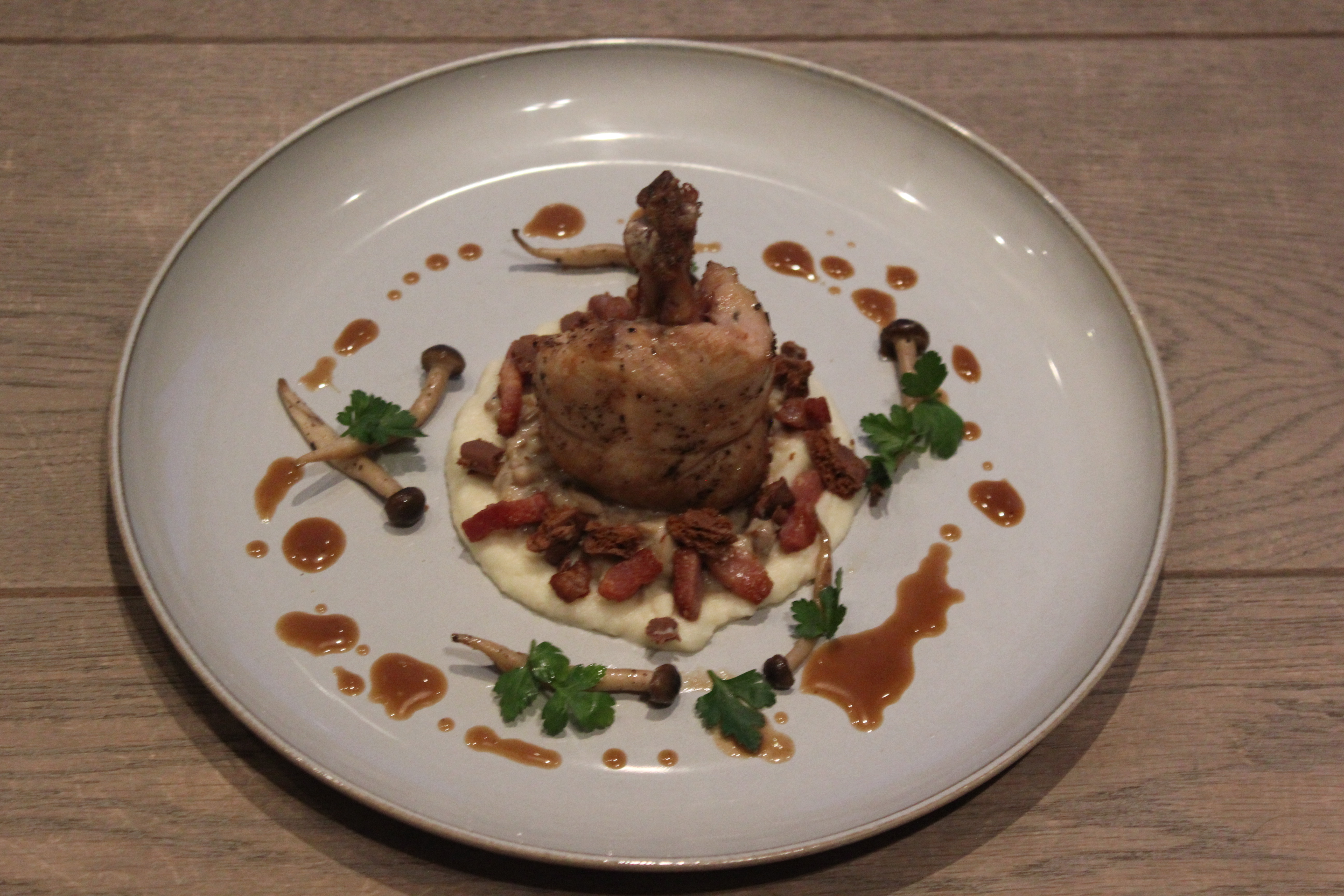 Parelhoen, peterseliewortel, champignons, virtuoso-koekjes