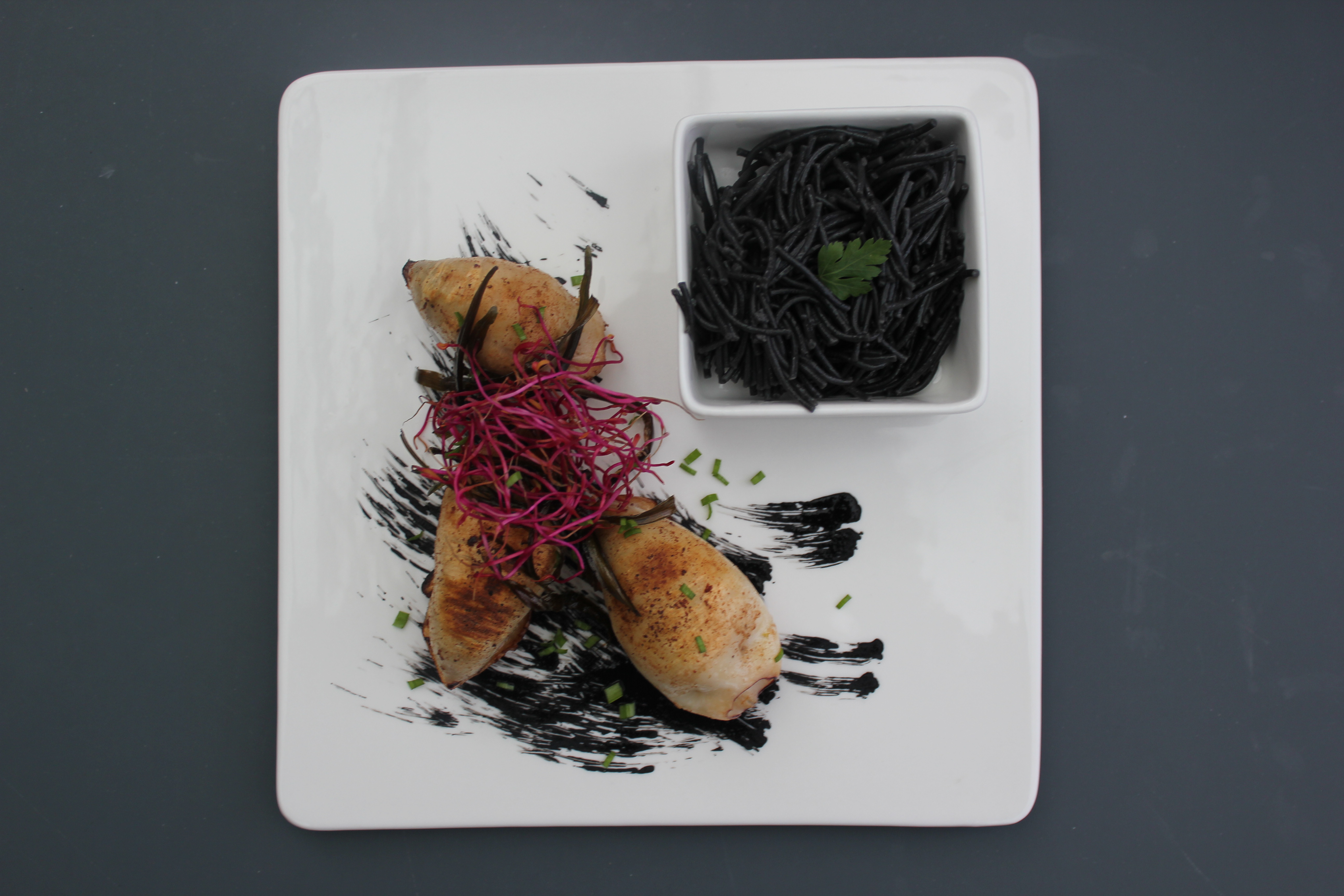 Chipirones rellenos de champinones