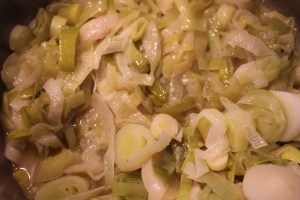 Zeeduivel, bladerdeeg, hesp, prei