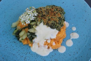 Barramundi, kruidenkorst, Paksoi, zoete aardappel