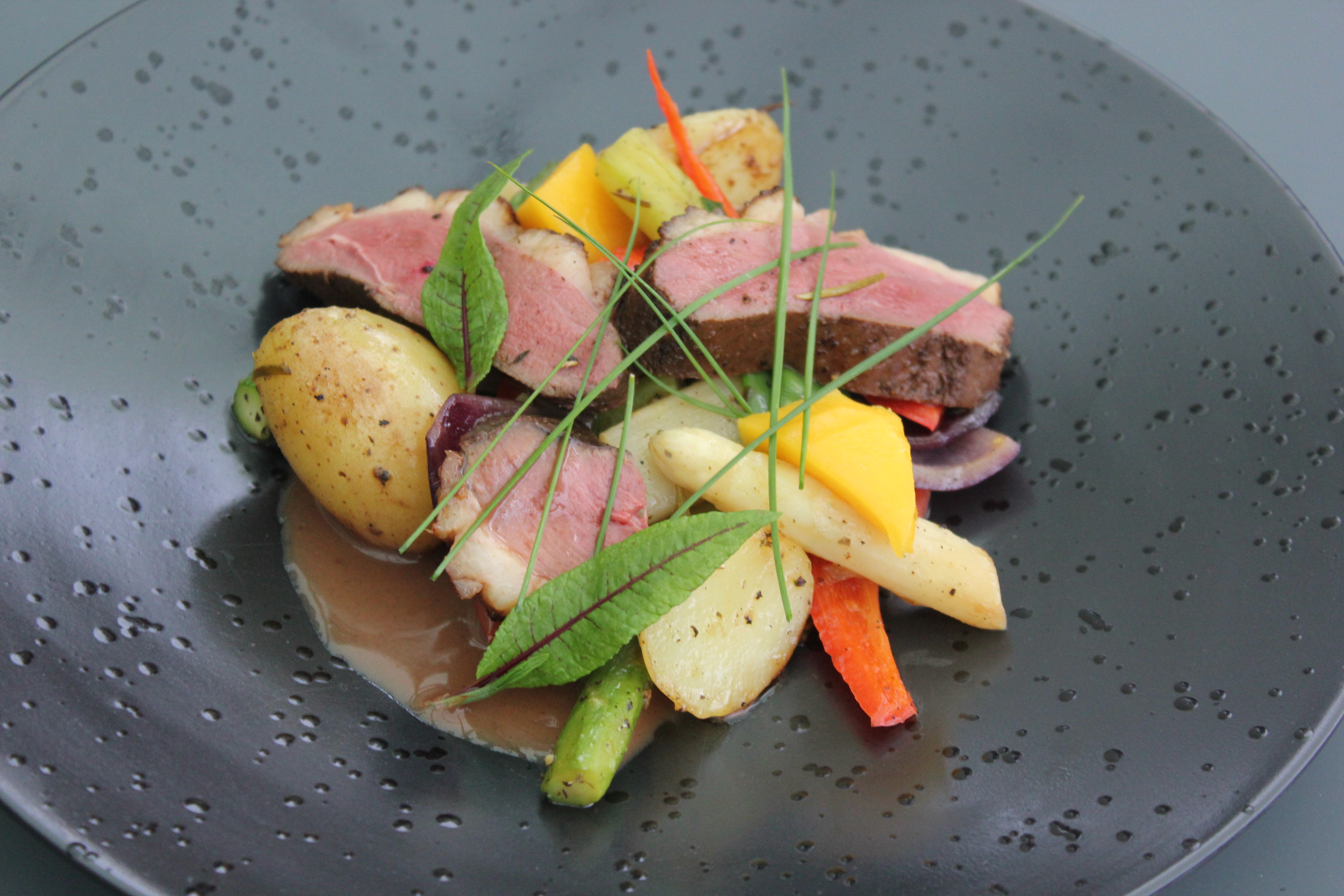 Eendenfilet, asperges,…, krielaardappelen,