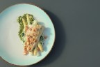 Zeebaars, asperges, aardappelcrème