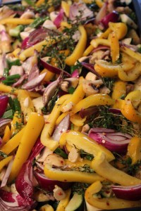 Tomahawk Steak van varken, gepofte aardappel, geroosterde groentjes