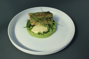 Kabeljauw, erwtenpuree, hollandaisesaus