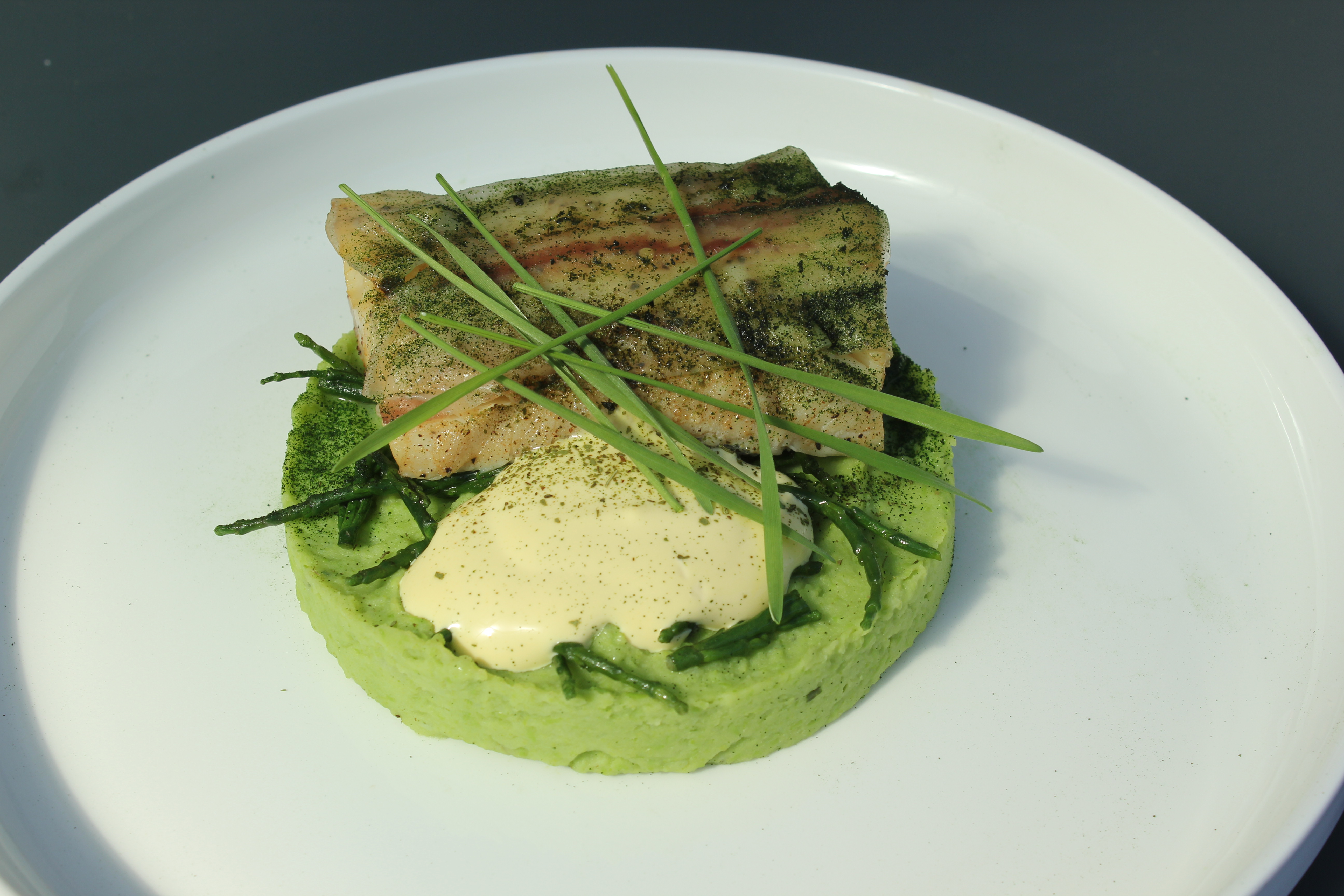 Kabeljauw, erwtenpuree, hollandaisesaus