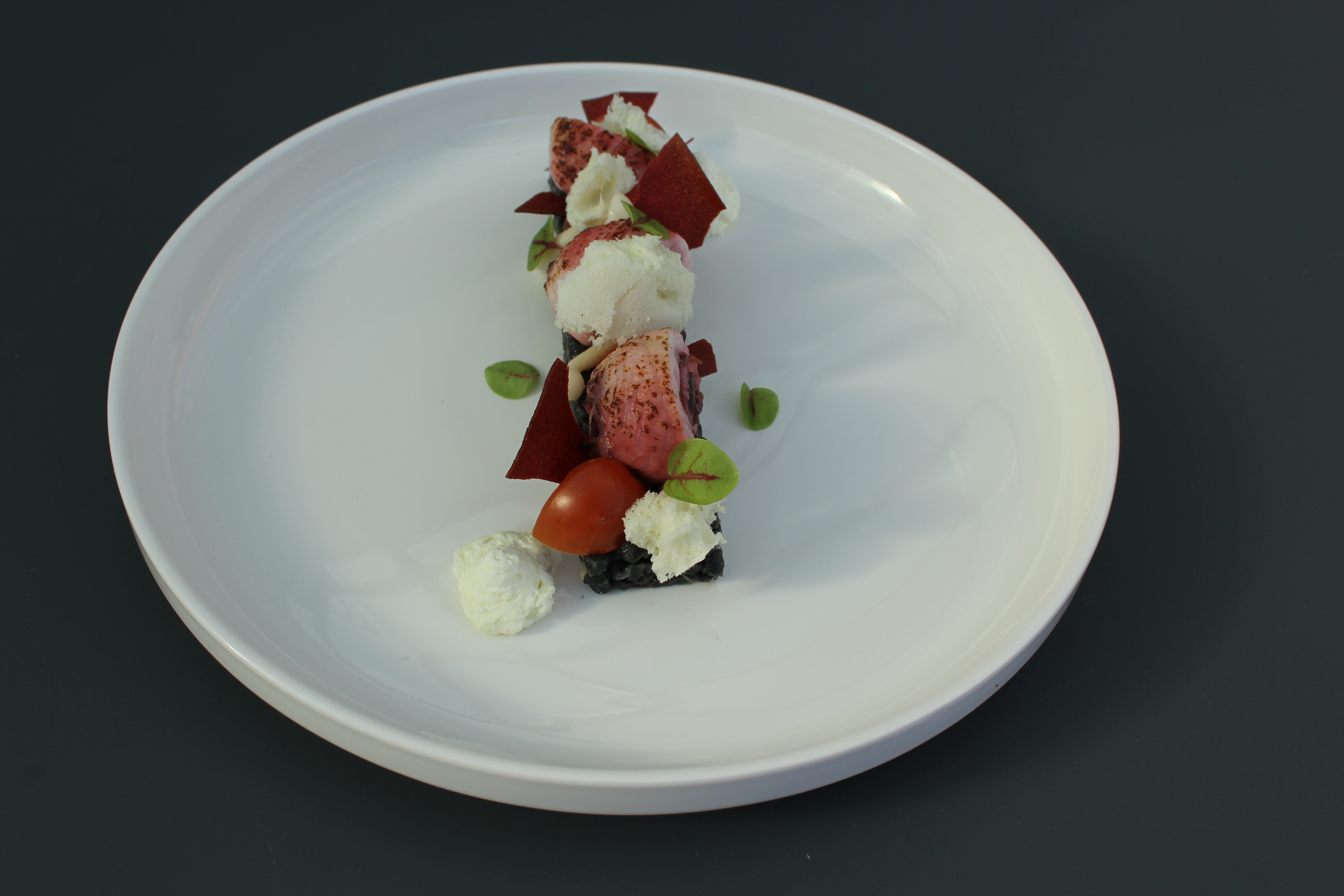 Scholfilet, fregula nero, wasabi