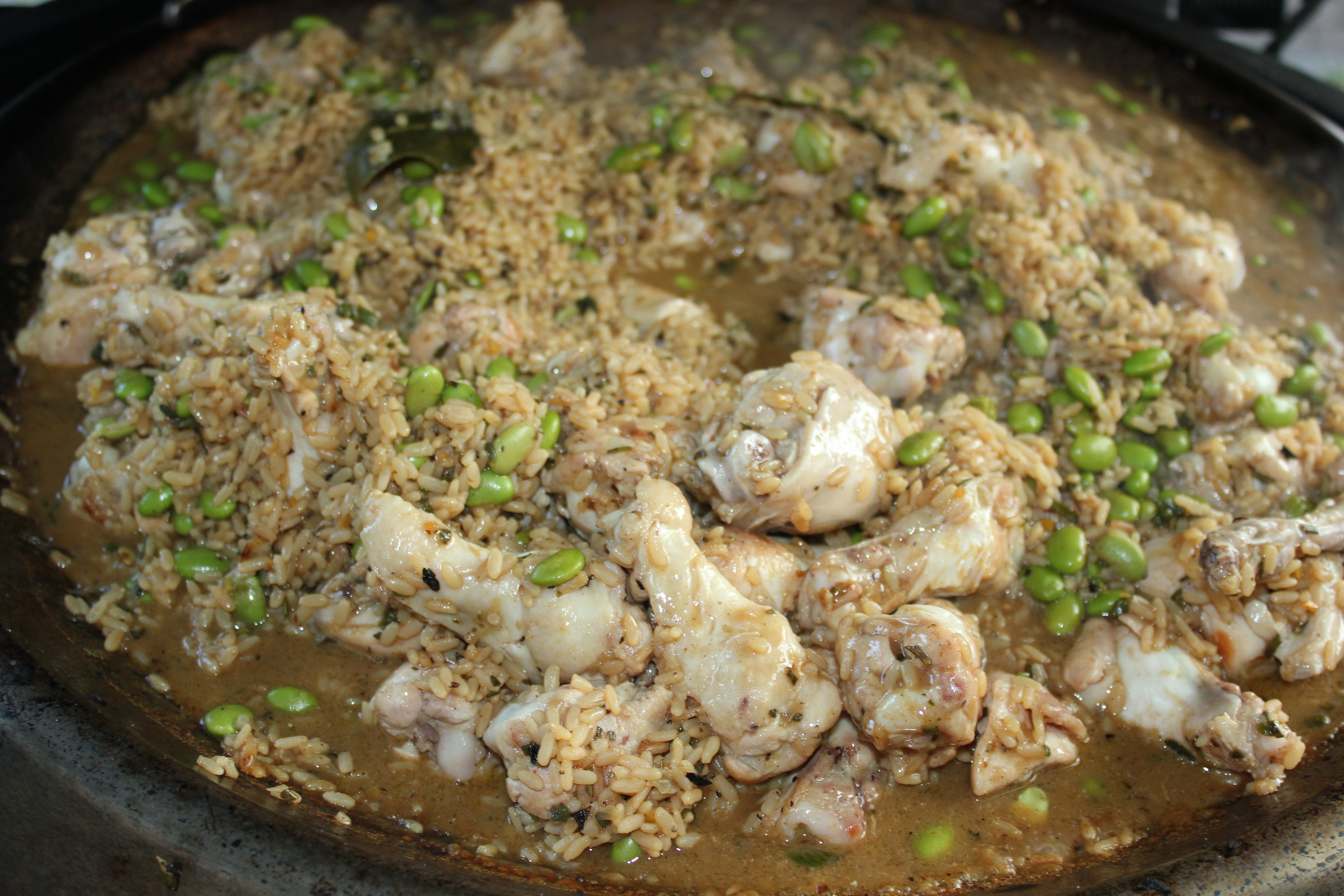 Traditionele paella, kip, konijn