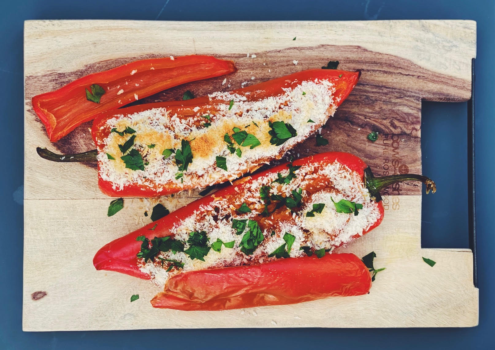 Gevulde paprika diabolique | scampi’s | puntpaprika | wortel | tomaat | rijst | peterselie |