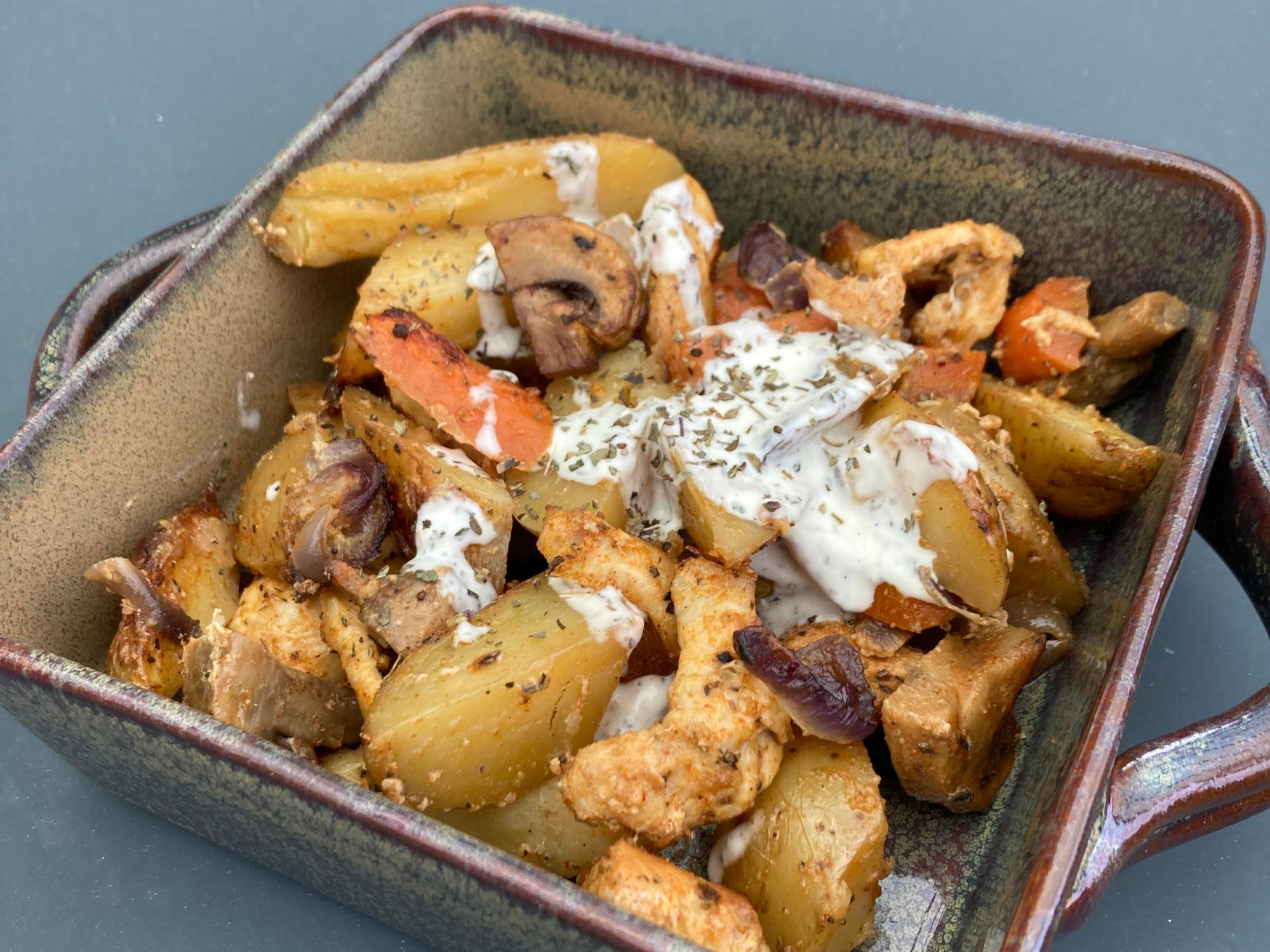 Ovenschotel kip met groenten en aardappeltjes (traybake)