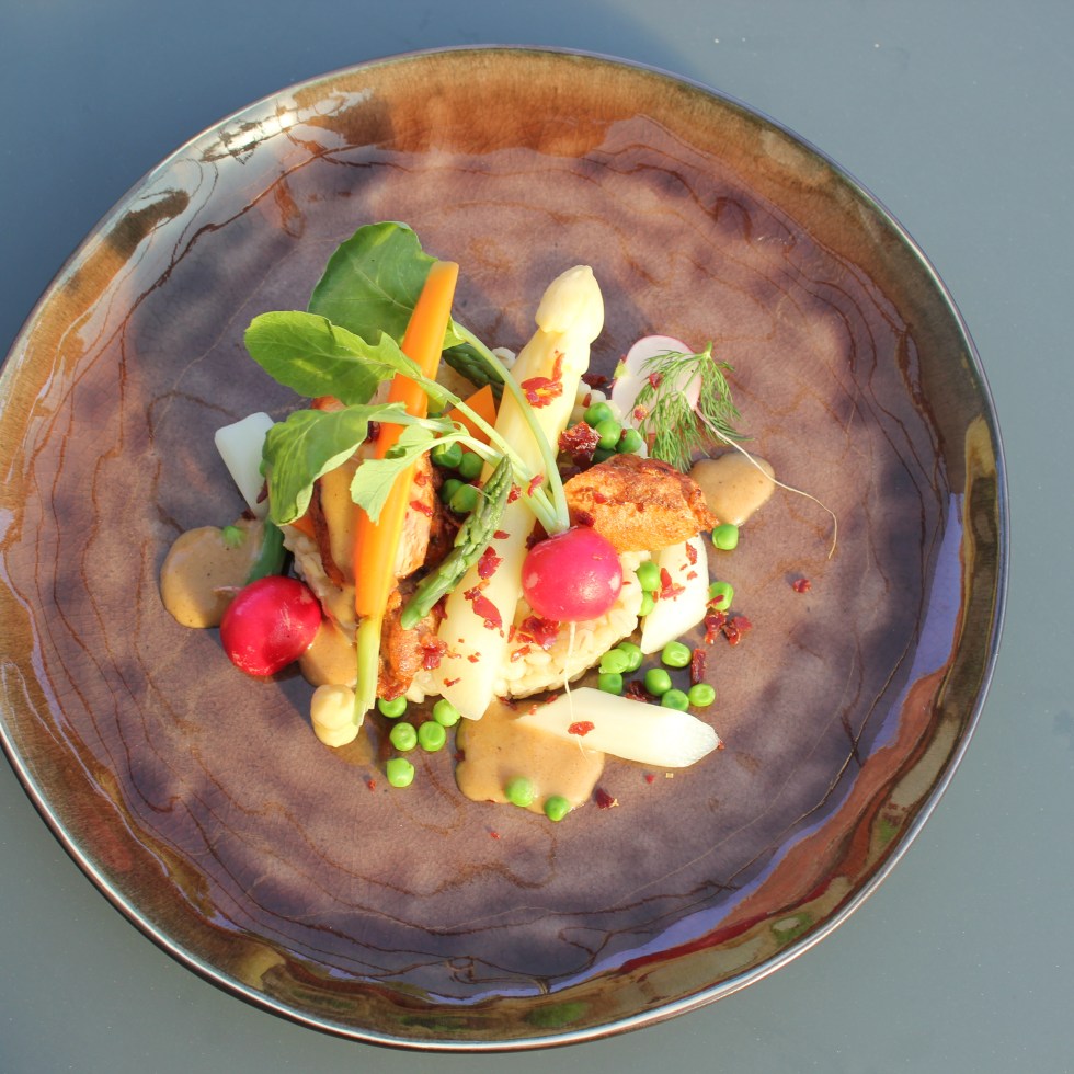 Parelhoen, gnocchi van truffel, gewokte spitskool