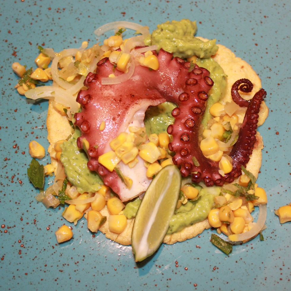 Octopus, guacachile, maïsrelish, gekonfijte citroen
